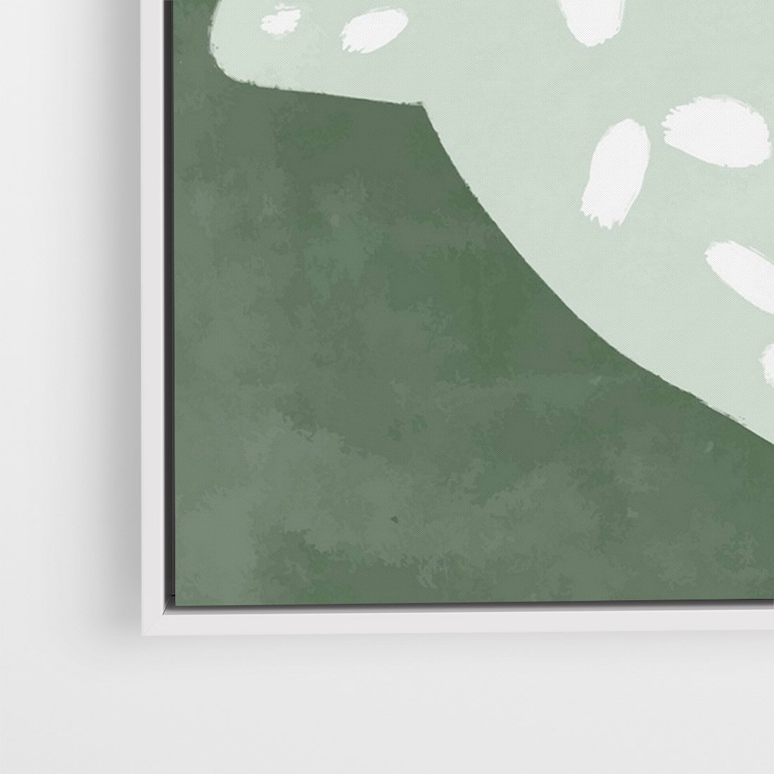 Minimalistyczny plakat z abstrakcją w odcieniach zieleni, której kształty przypominają delikatną rybę. Doskonały element dekoracyjny do nowoczesnych przestrzeni.