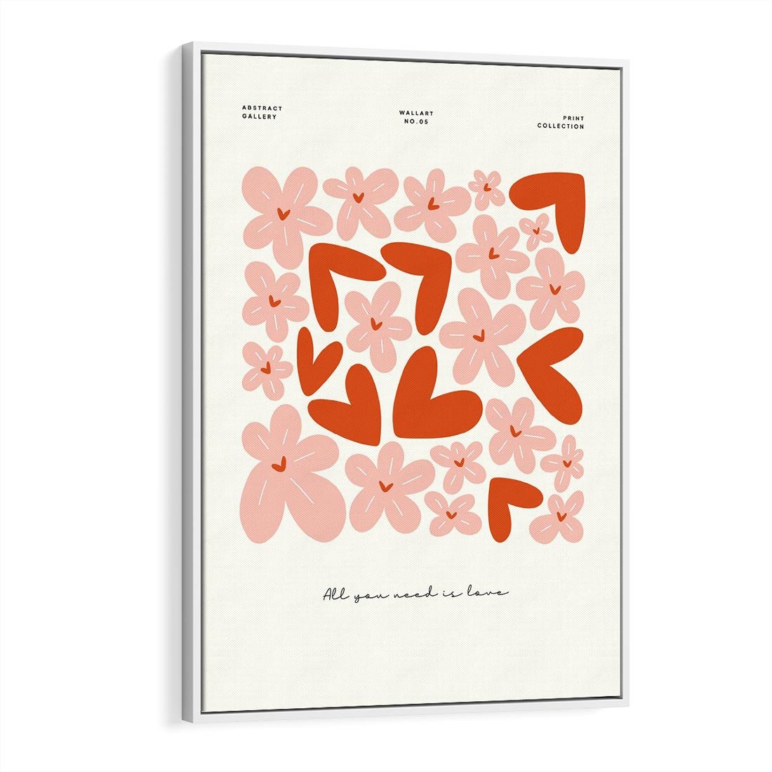 Obraz w ramie 50x70 - Miłość w Kompozycji - grafika, kompozycja kwiaty i serca - rama biała
