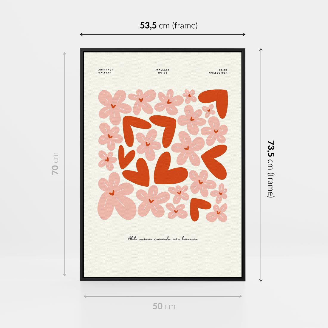 Obraz w ramie 50x70 - Miłość w Kompozycji - grafika, kompozycja kwiaty i serca - rama czarna