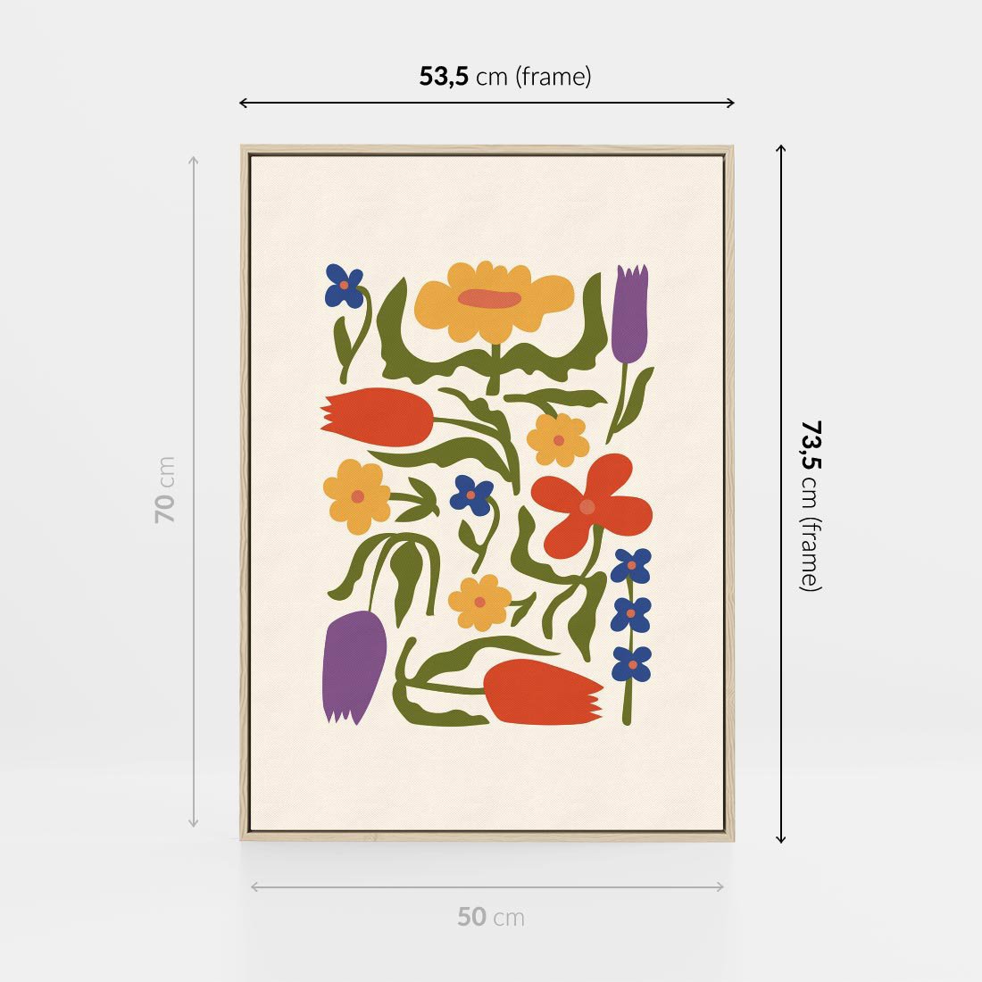 Obraz w ramie 50x70 - Minimalistyczna Harmonia - kwiaty, sztuka nowoczesna - rama drewno