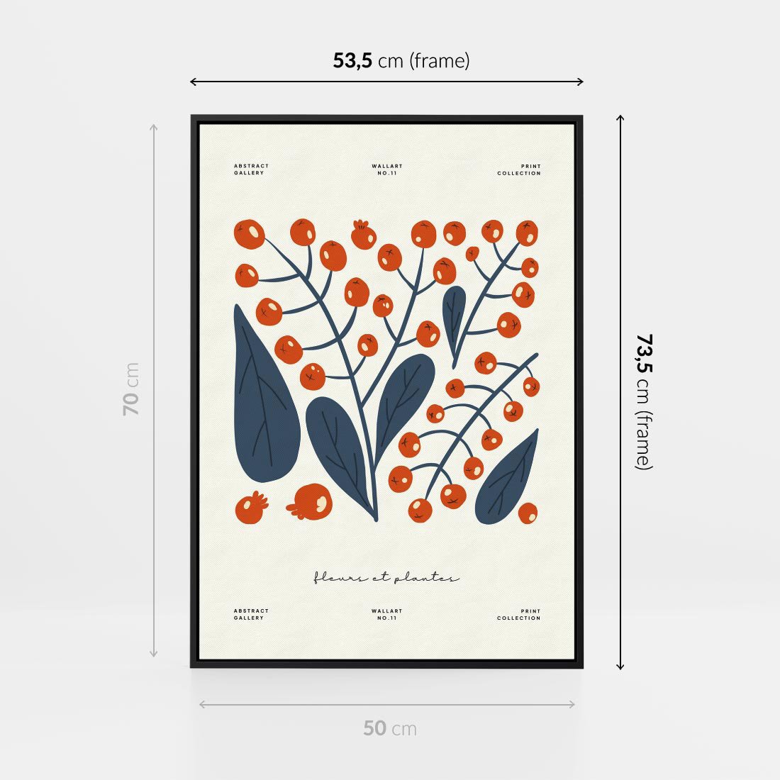 Obraz w ramie 50x70 - Minimalistyczna Uroda Jarzębin - jarzębiny, niebieskie liście - rama czarna