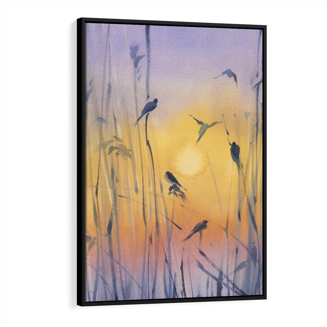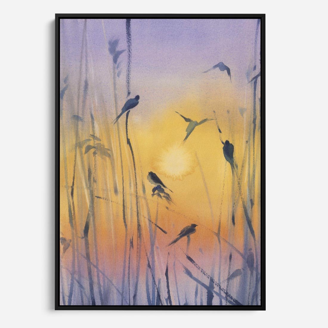 Ta akwarela ukazuje piękny wschód słońca w szuwarach, gdzie trawy ukrywają się w mglistym poranku. Ptaki siedzące na tataraku dodają uroku temu pejzażowi. Mistyka Poranka nad Szuwarami ożywia fioletowo-złote odcienie, tworząc aurę tajemniczości i spokoju, która przenosi nas w chwilę magicznego i naturalnego piękna.