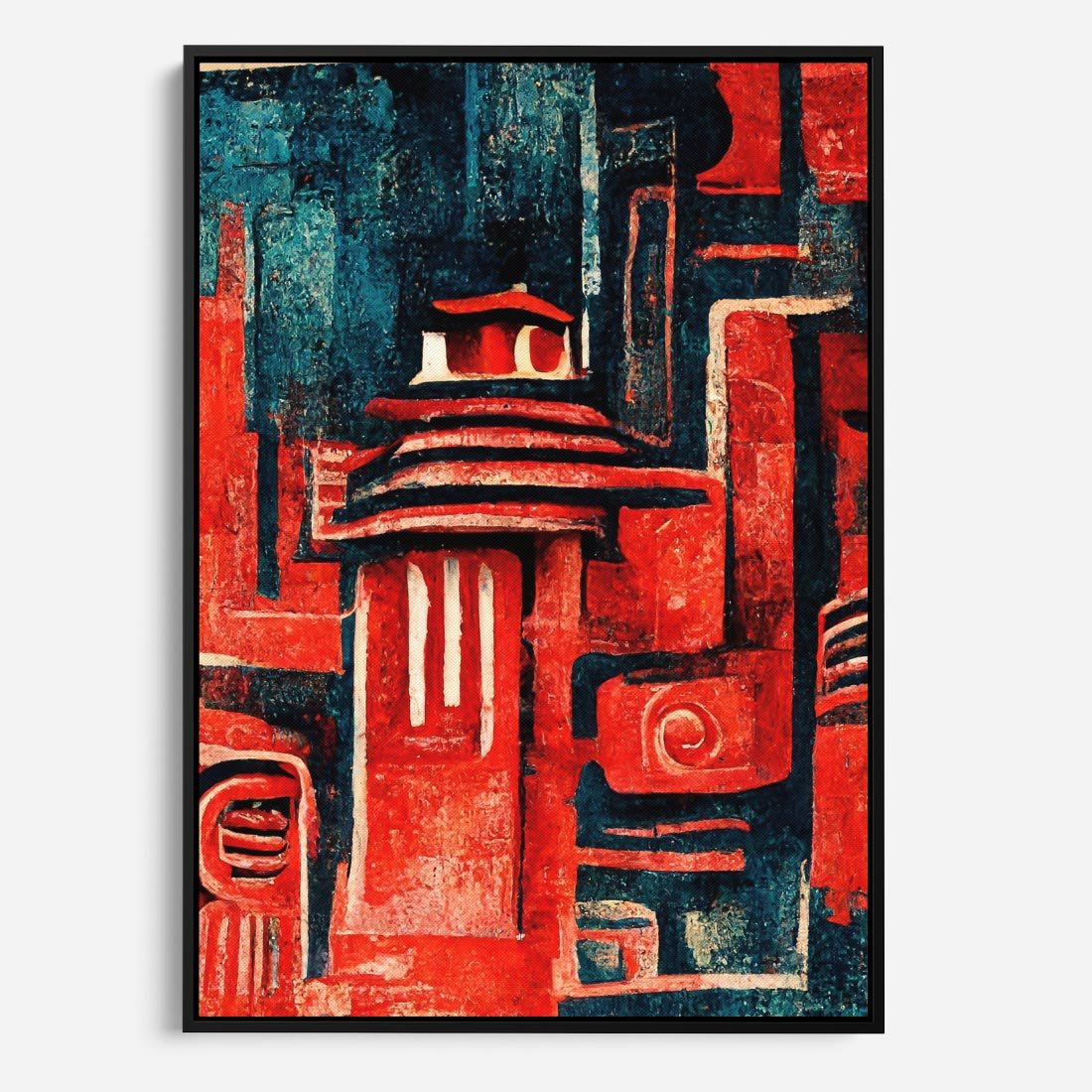 Przenikające się nawiązania do japońskiej i chińskiej kultury ukazane w granatowych i czerwonych barwach. Delikatne elementy architektury wtapiają się w malowniczy krajobraz, tworząc fascynującą orientalną sztukę. Idealne uzupełnienie dla wnętrz z odrobiną ducha Wschodu i tajemniczości.