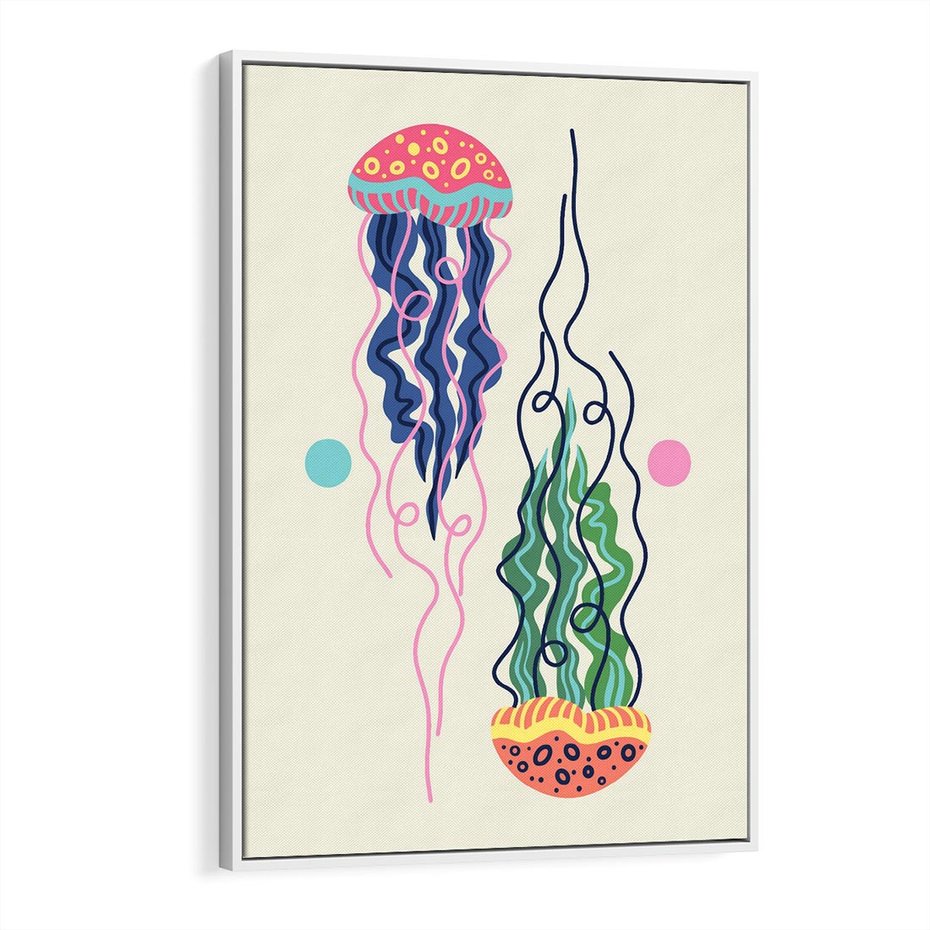 Ten nowoczesny i optymistyczny plakat przedstawia kolorowe meduzy, tworząc radosną atmosferę. To dzieło sztuki wniesie do Twojej przestrzeni żywość i pozytywne wibracje, tworząc jednocześnie wyjątkowy akcent artystyczny. Idealny wybór, aby dodać koloru i energii do swojego otoczenia.