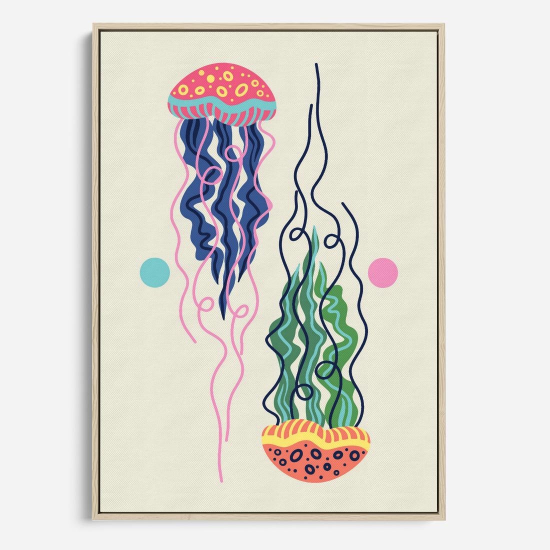 Ten nowoczesny i optymistyczny plakat przedstawia kolorowe meduzy, tworząc radosną atmosferę. To dzieło sztuki wniesie do Twojej przestrzeni żywość i pozytywne wibracje, tworząc jednocześnie wyjątkowy akcent artystyczny. Idealny wybór, aby dodać koloru i energii do swojego otoczenia.