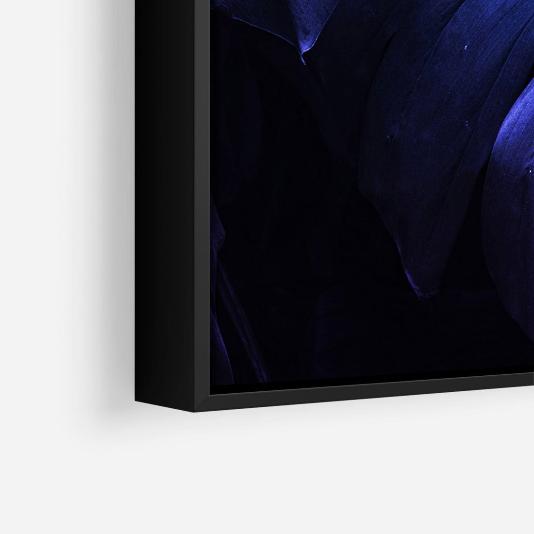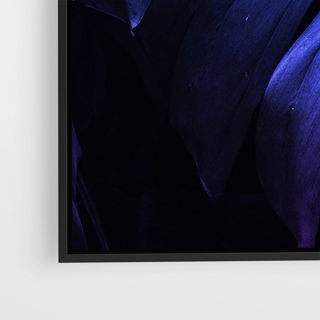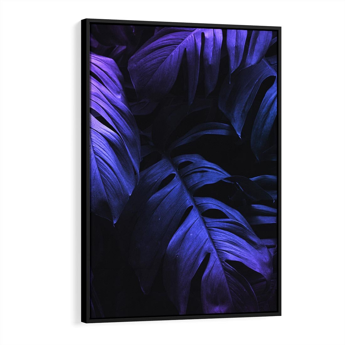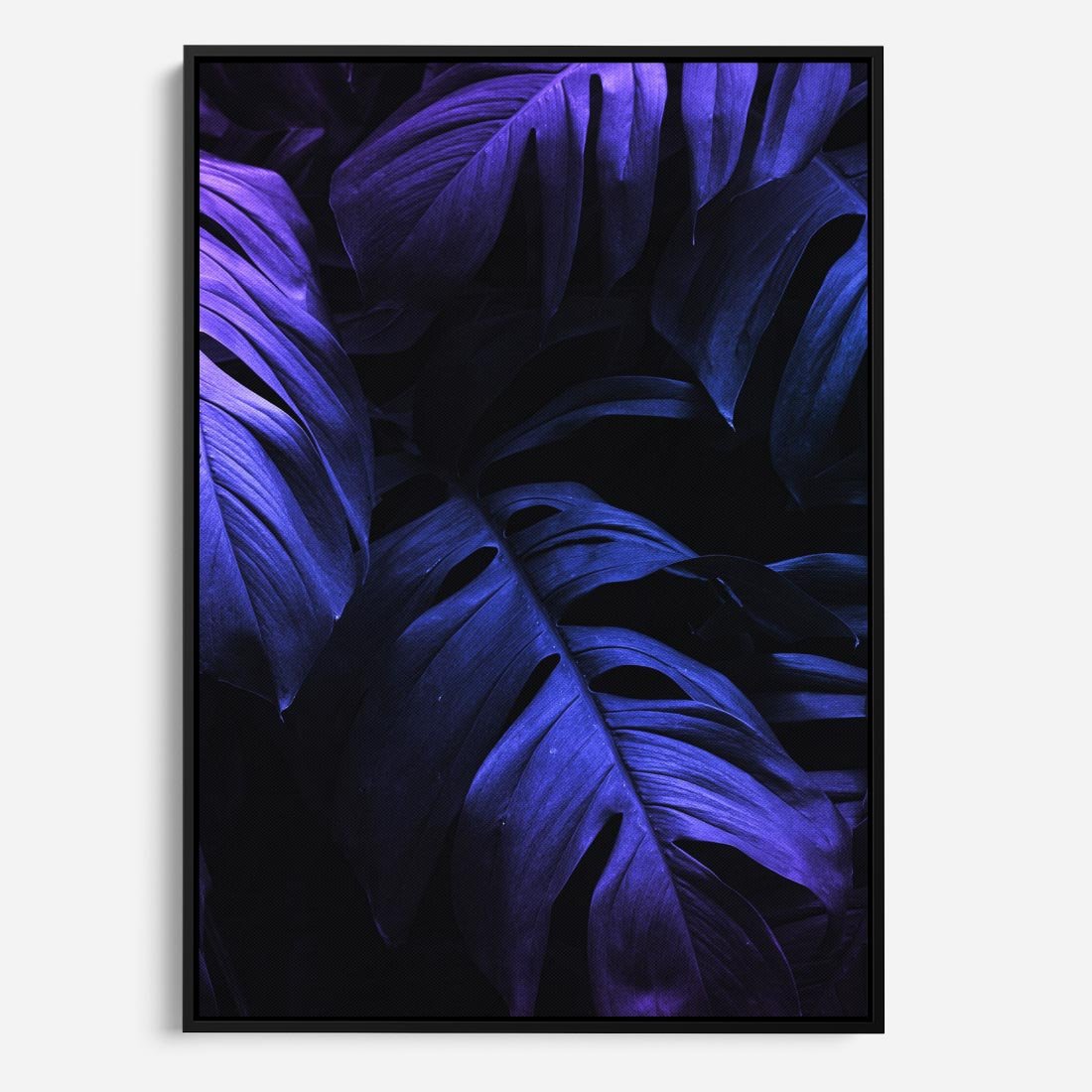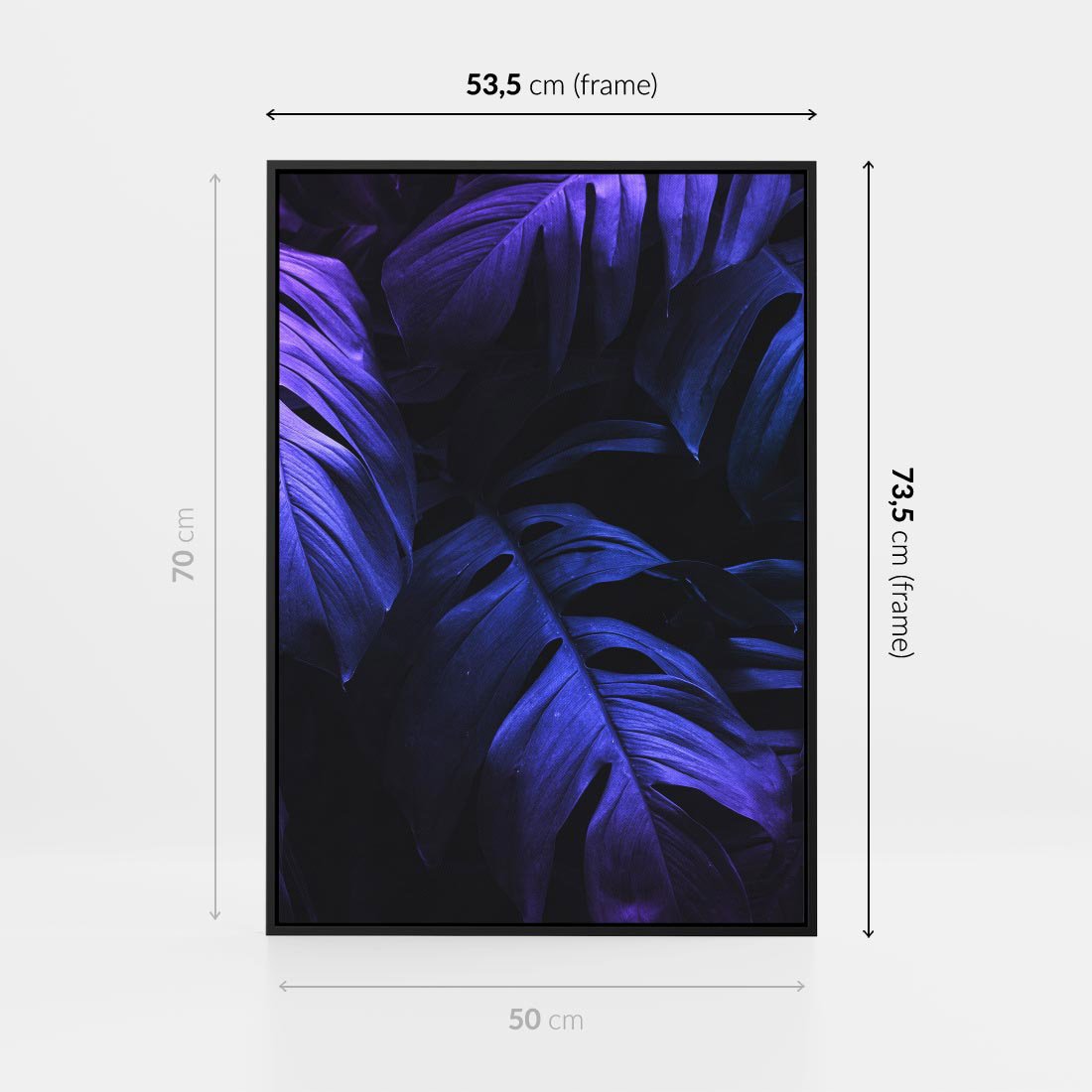 Obraz w ramie 50x70 - Mroczna Magia Dżungli - mroczna grafika, fioletowe liście monstery na czarnym tle - rama czarna