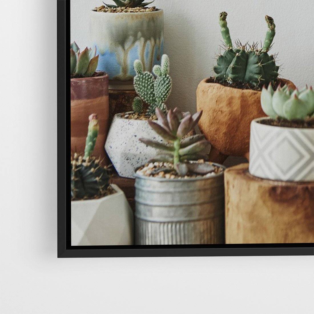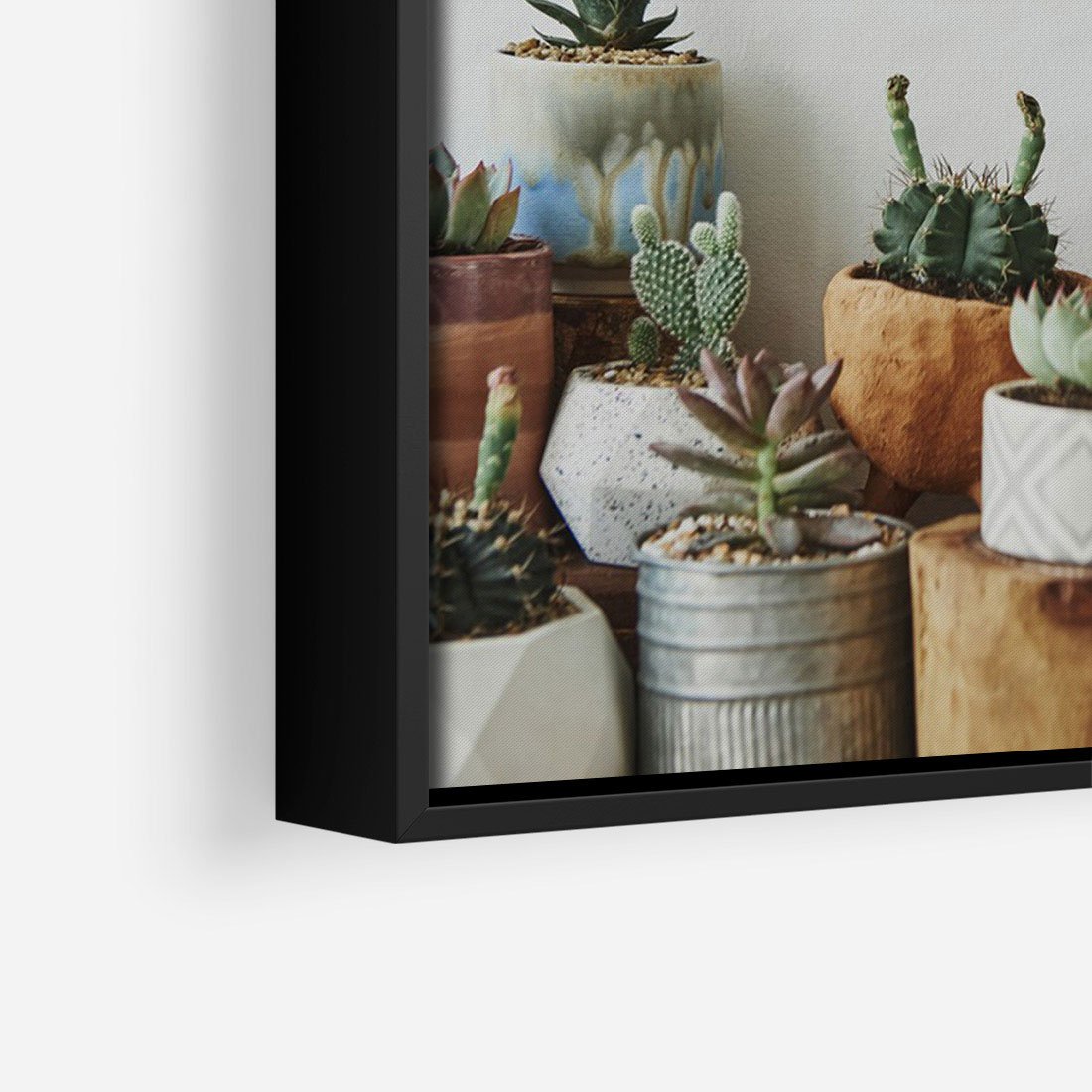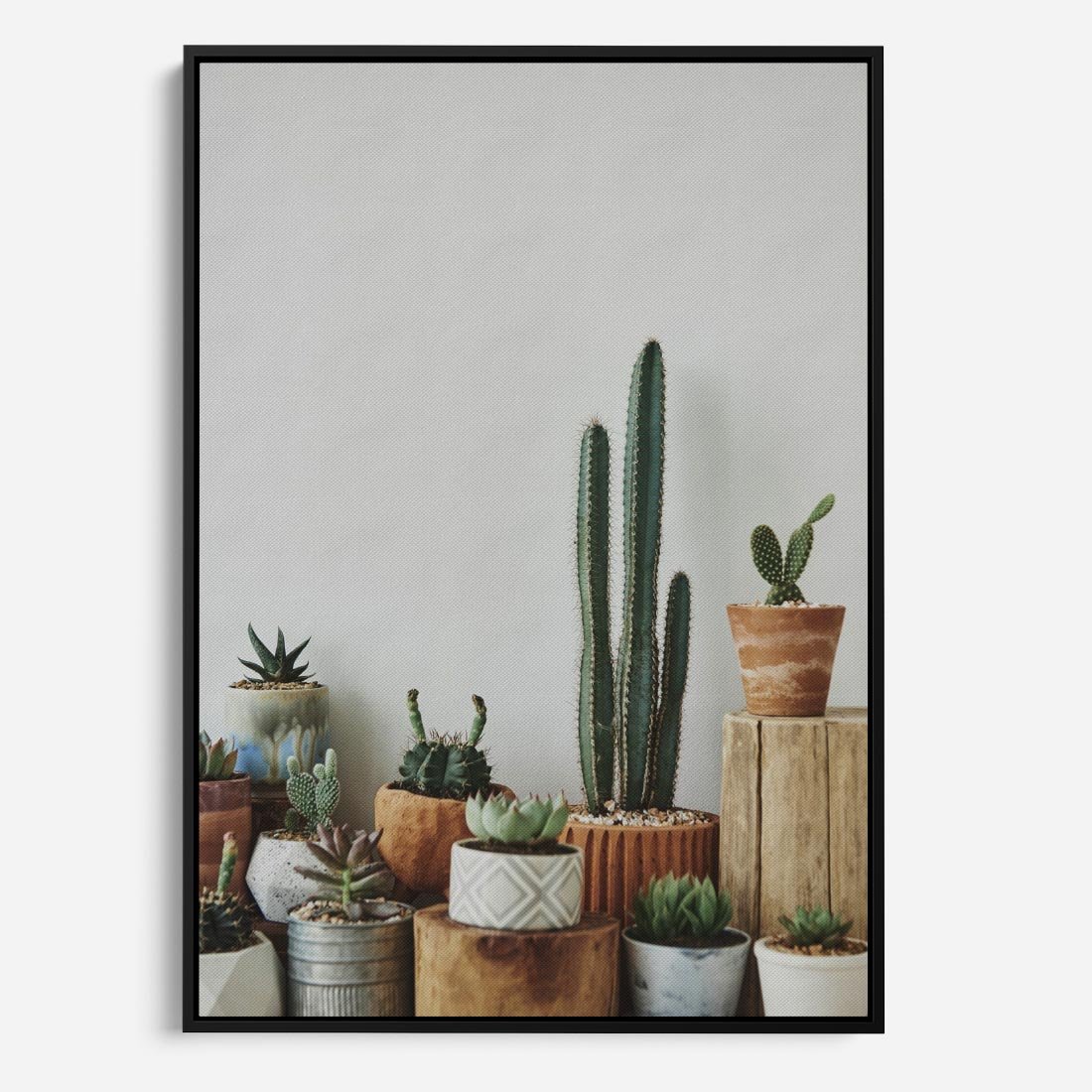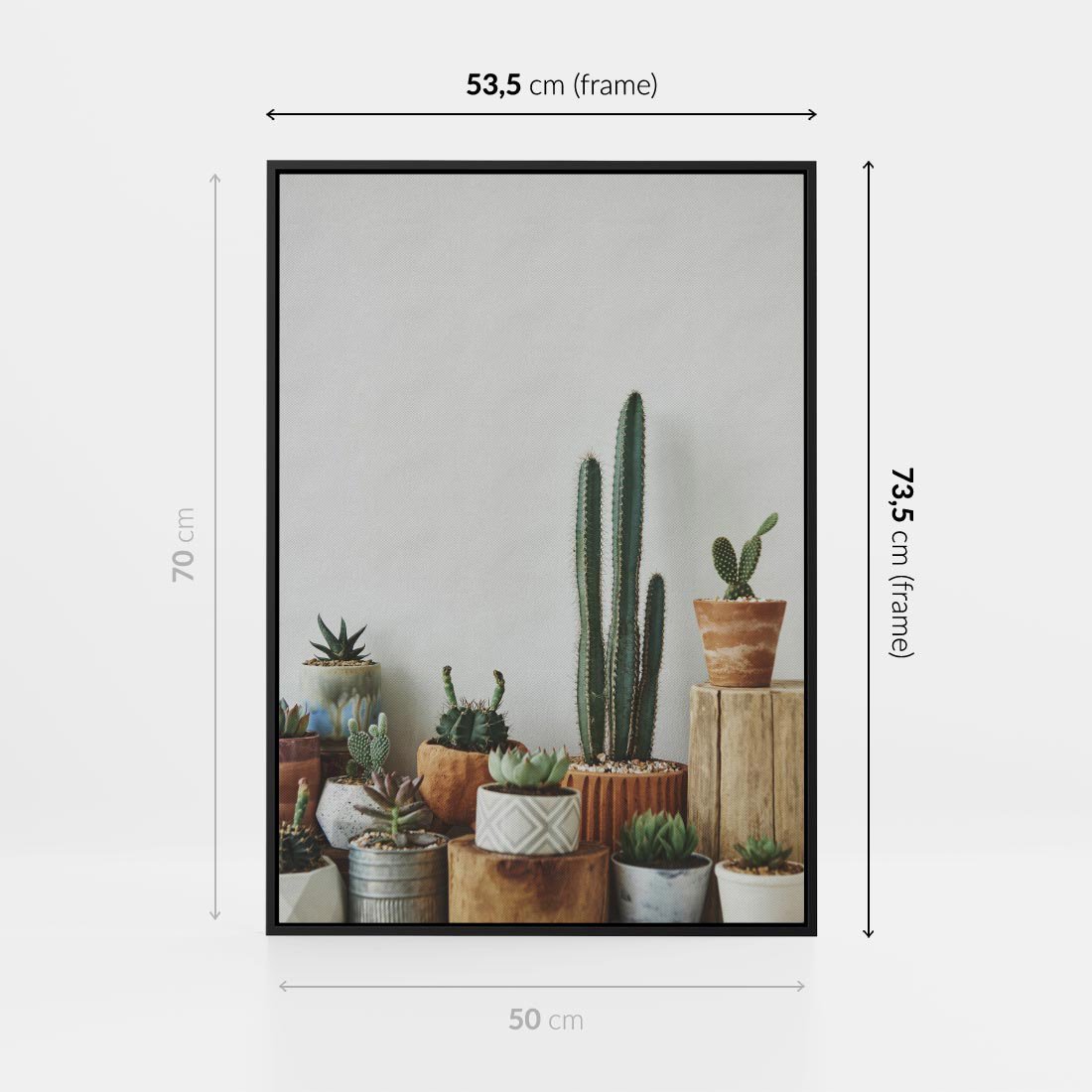 Obraz w ramie 50x70 - Naturalna Harmonia - kaktusy, liście - rama czarna