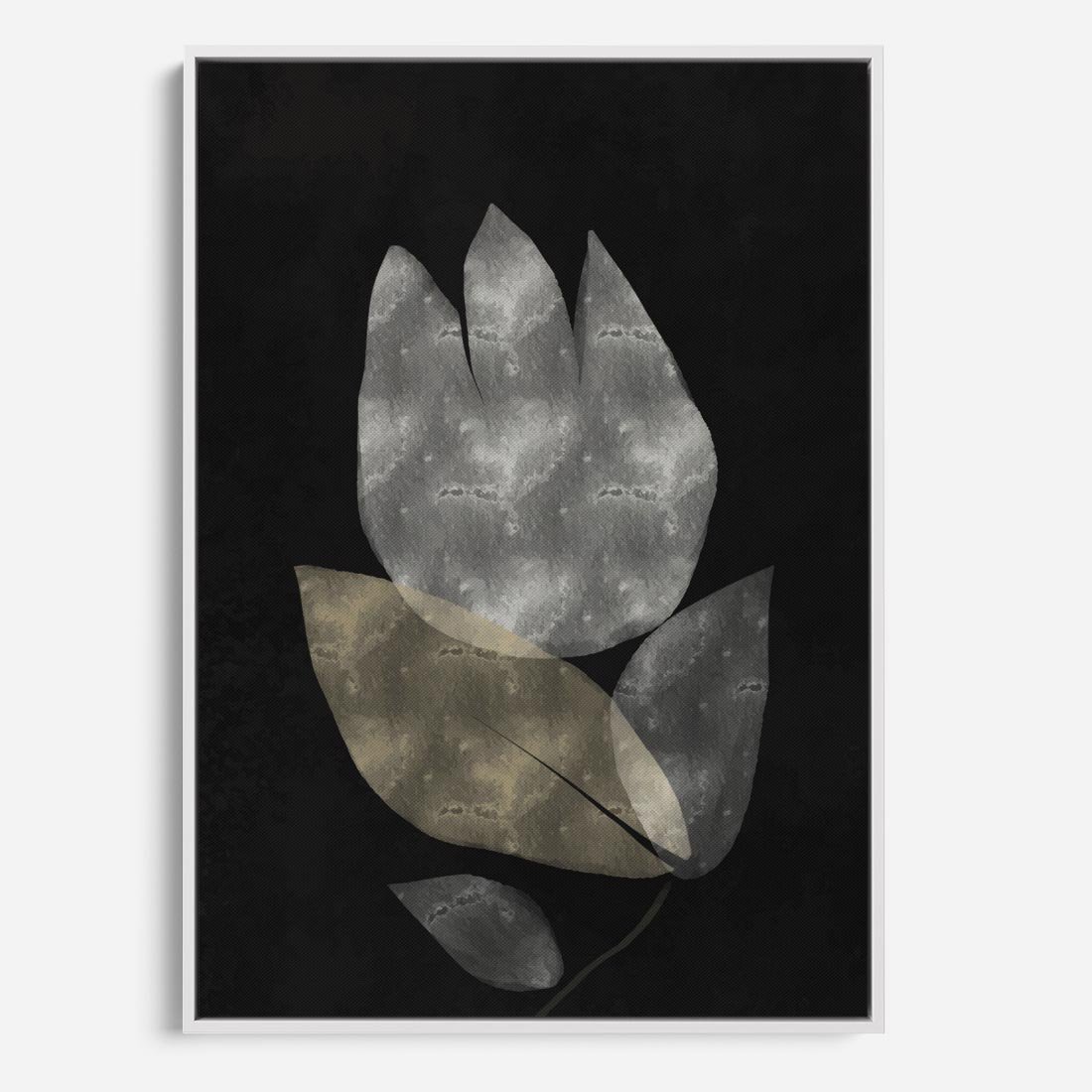 Obraz w ramie 50x70 - Nocne Uniesienia - abstrakcyjny kwiat, mroczna atmosfera - rama biała