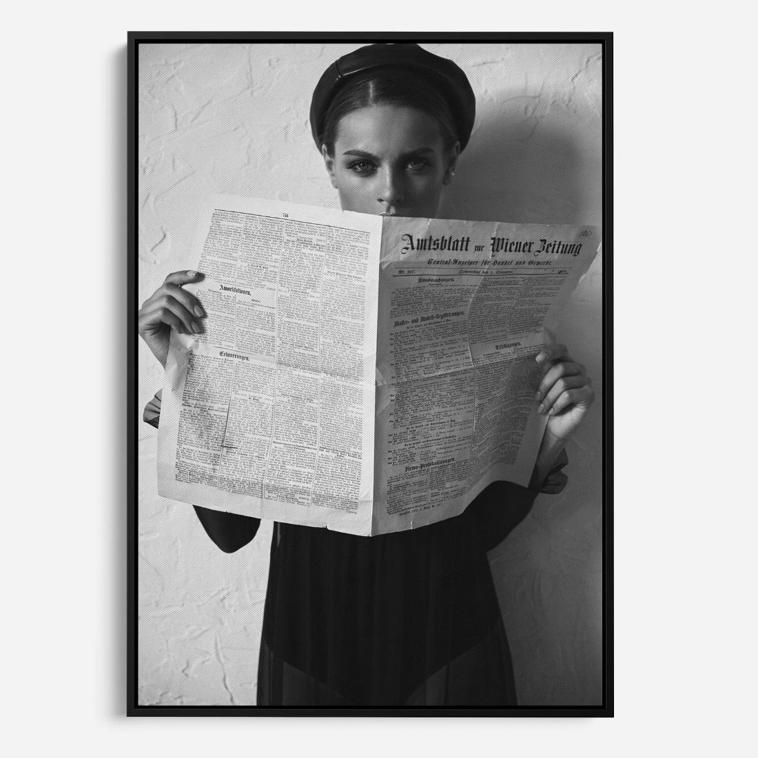 To urokliwe czarno-białe retro zdjęcie przedstawia elegancką kobietę w stylowym kaszkietcie, trzymającą gazetę. Obraz emanuje klasycznym urokiem i nostalgią za minionymi dekadami. Elegancja, która bije z tego zdjęcia, odzwierciedla pewien czasowy okres, kiedy elegancja i styl były na wagę złota. Ten wyjątkowy klimat retro sprawia, że zdjęcie jest idealnym dodatkiem do wnętrz urządzonych w klasycznym stylu lub dla tych, którzy cenią sobie klasykę i wintaż. To także piękny hołd dla epoki, która wciąż zachwyca swoim wdziękiem i stylem.