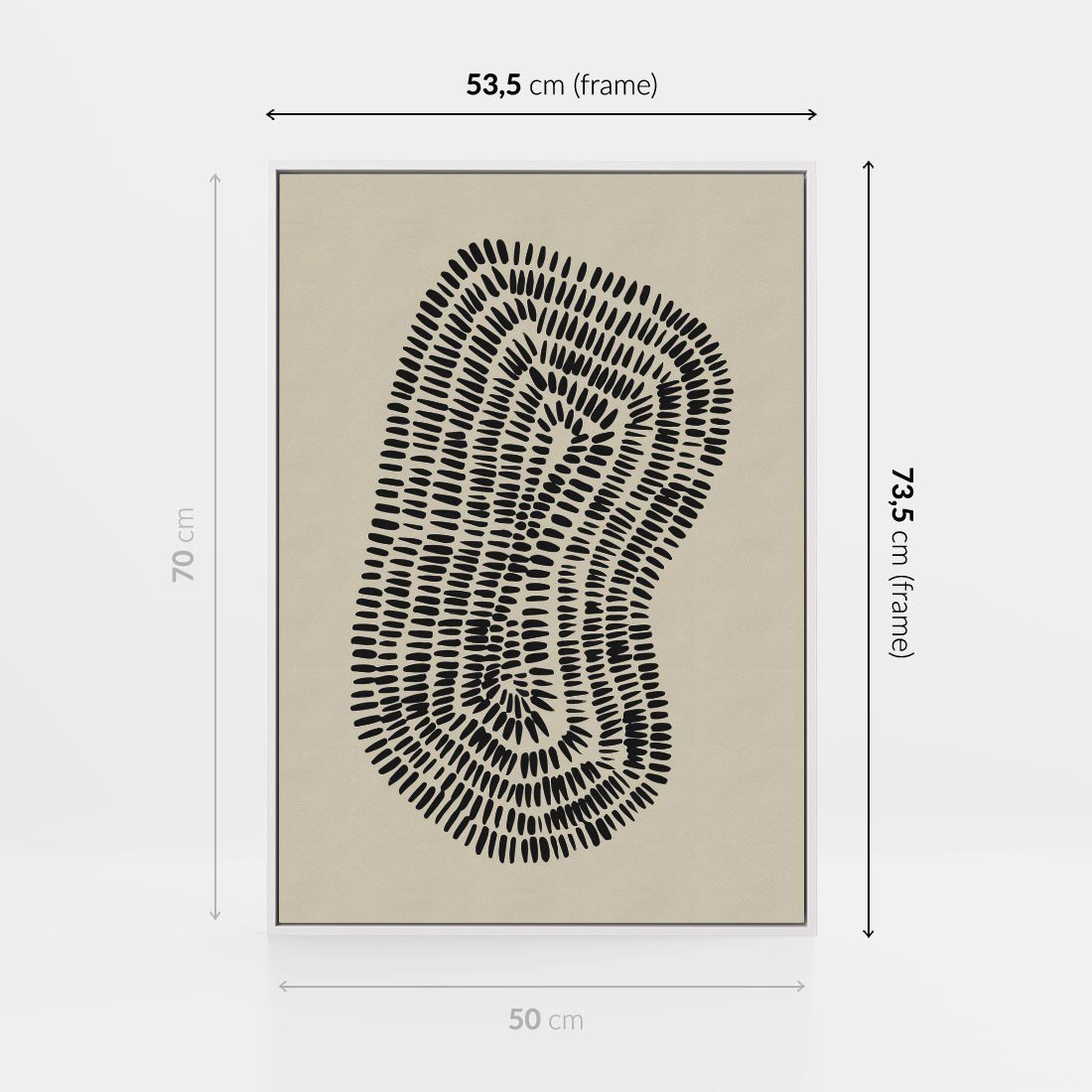 Obraz w ramie 50x70 - Nowoczesne Odbicia Wnętrza - boho plakat, czarne kropki kreski - rama biała