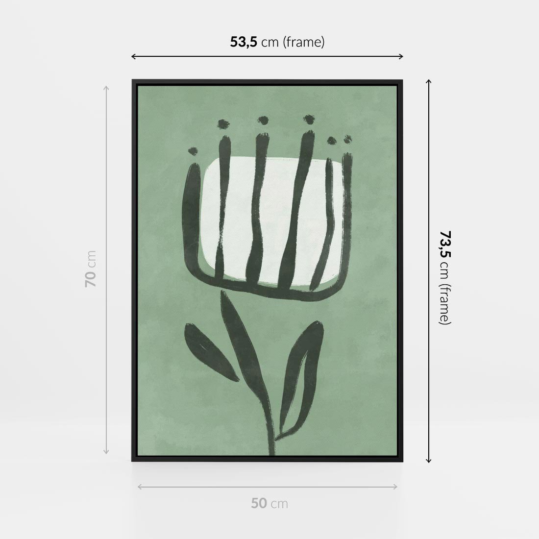 Obraz w ramie 50x70 - Objęcia Zieleni - zielona abstrakcja, zgaszona zieleń - rama czarna