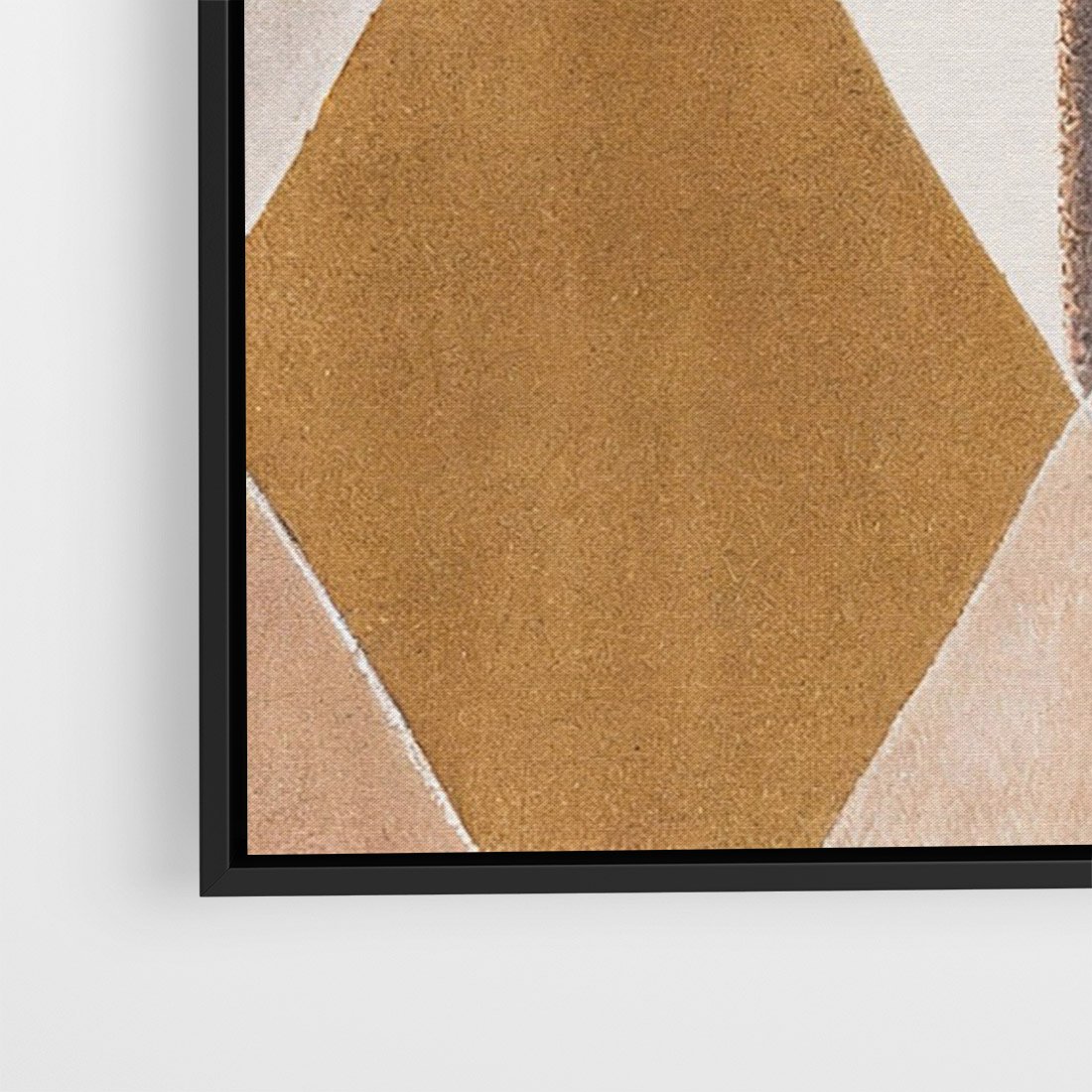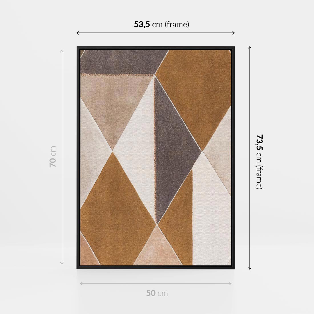 Obraz w ramie 50x70 - Odblaski niespełnionych marzeń - kompozycja z trójkątów, mix kolorów ziemi - rama czarna