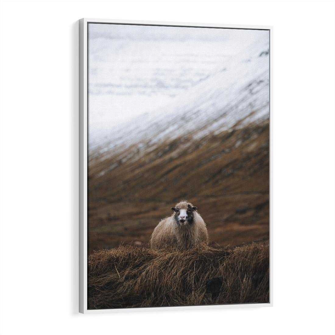 Obraz w ramie 50x70 - Owiecka panorama - góry, owca - rama biała