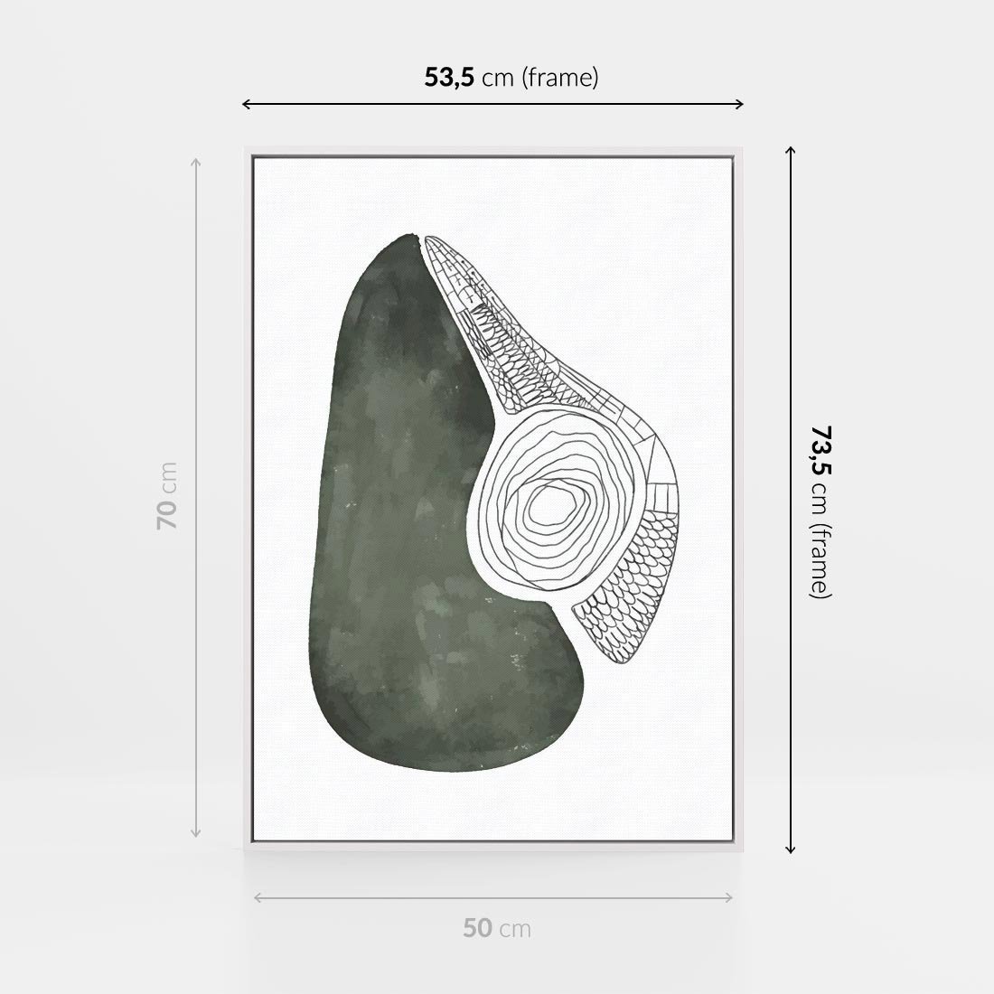 Ten minimalistyczny plakat prezentuje abstrakcyjną interpretację gruszki w stonowanej, zgaszonej zieleni. To dzieło sztuki doskonale łączy minimalizm z abstrakcją, tworząc delikatną i nowoczesną kompozycję. Jest idealnym wyborem dla osób ceniących sobie prostotę, elegancję i unikalne formy abstrakcyjne, które dodają charakteru przestrzeni.