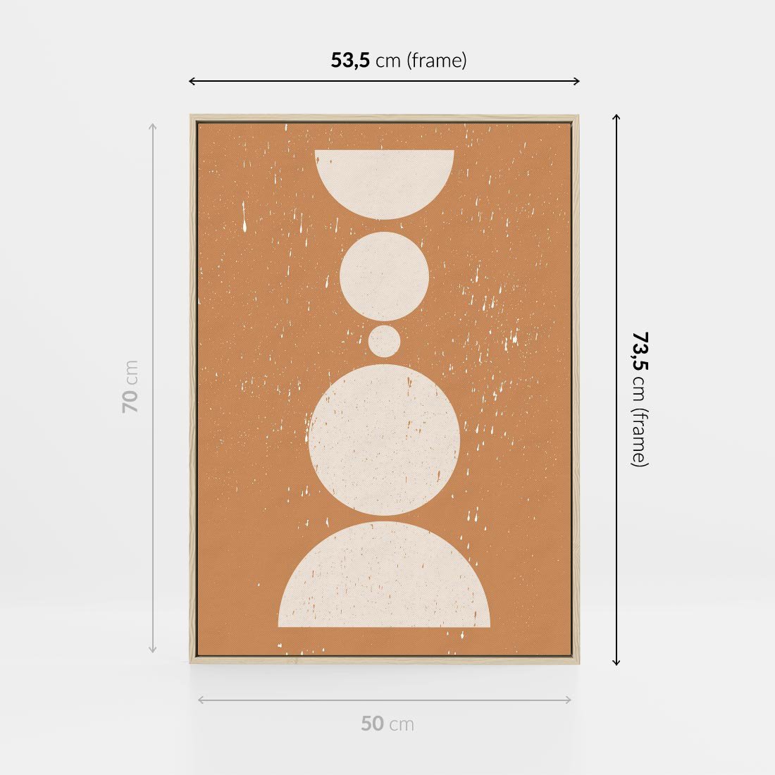 Wprowadź do swojego wnętrza ducha mid century stylu dzięki tej nowoczesnej grafice. Koła i półkola w odcieniach beżu tworzą minimalistyczną kompozycję, która zachwyca prostotą i elegancją.