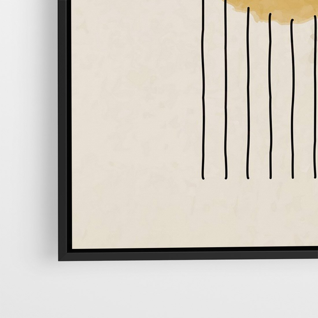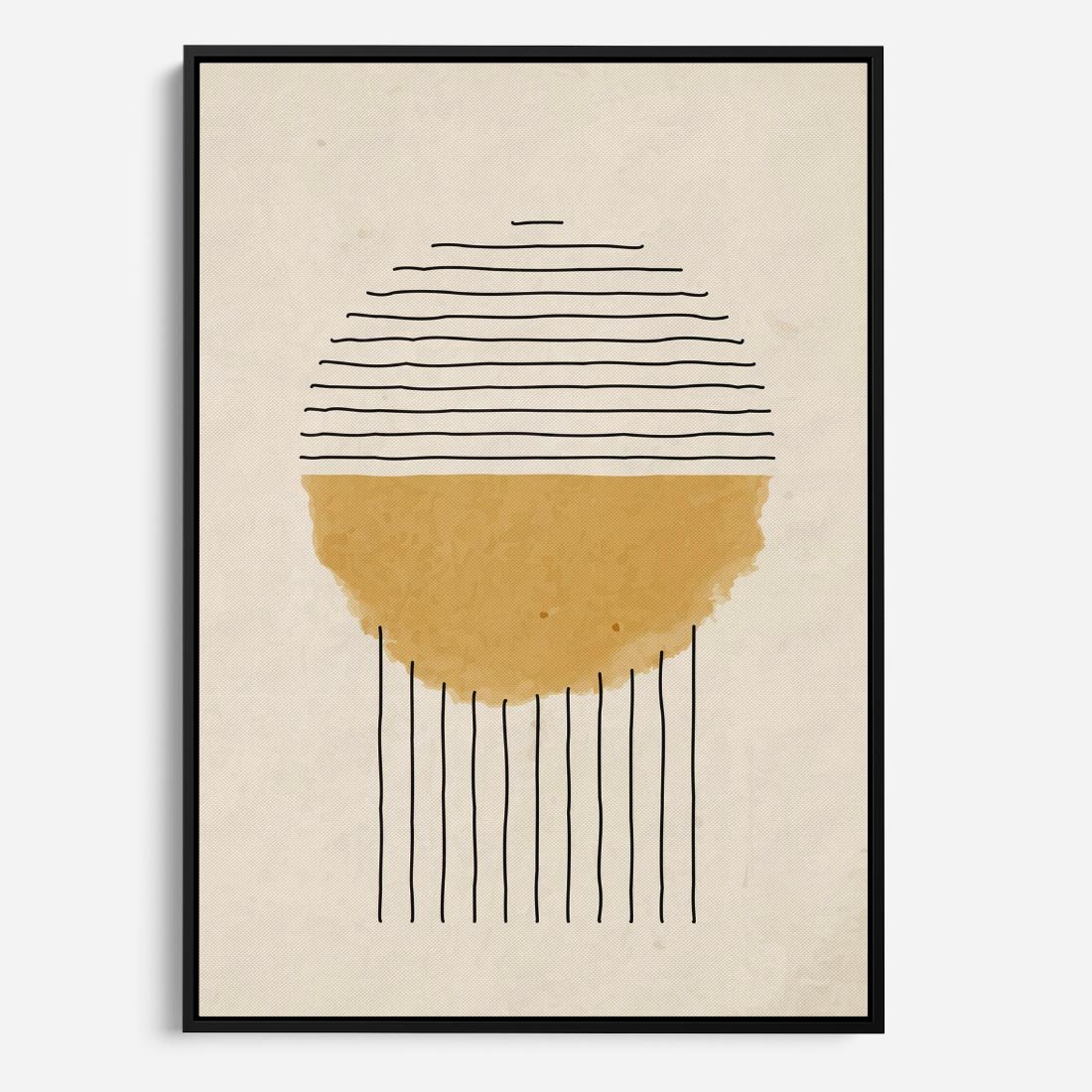 Akwarelowa plama z geometrycznymi, szkicowanymi kształtami, które tworzą regularność i prostotę, to doskonały przykład połączenia abstrakcji z geometrycznym stylem. To idealny element dekoracyjny dla tych, którzy cenią sobie minimalistyczny design, a jednocześnie pragną wprowadzić do swojej przestrzeni subtelny i artystyczny akcent.