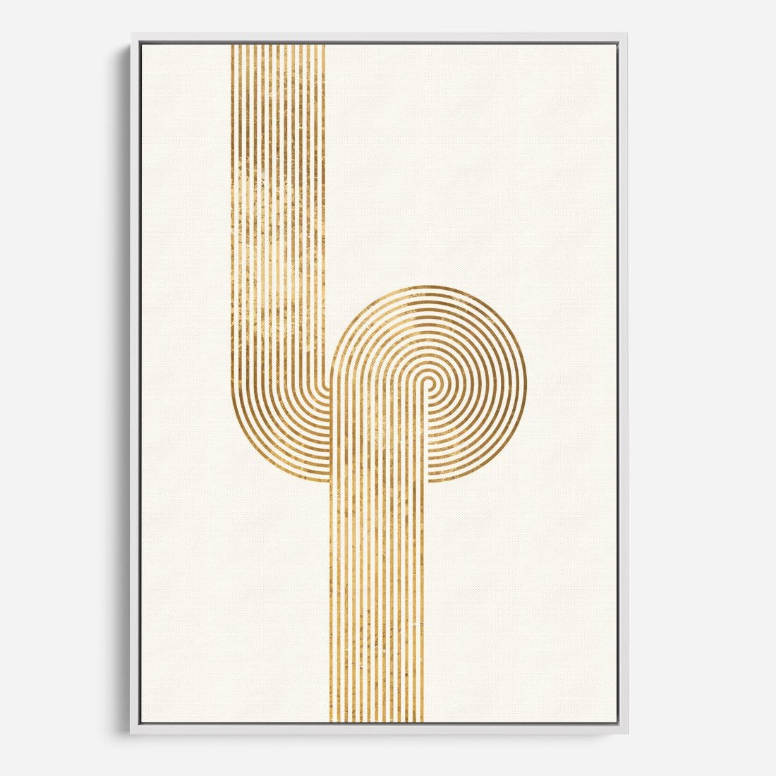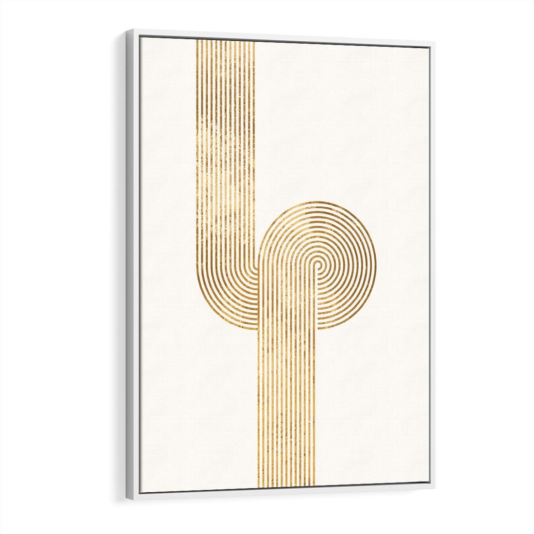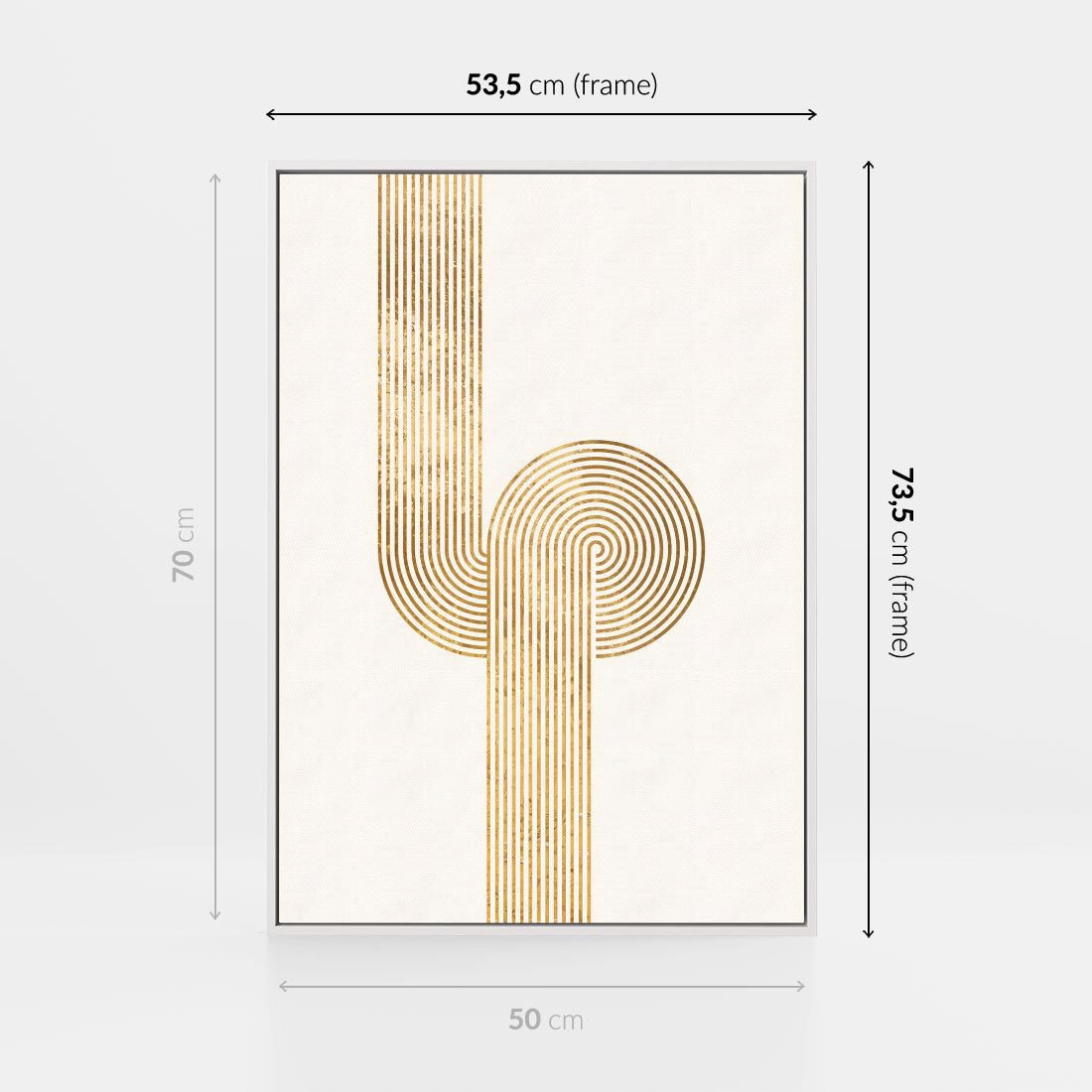 Obraz w ramie 50x70 - Podróżne Kształty - geometryczne linie w złotym kolorze, minimalizm - rama biała