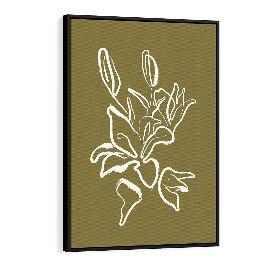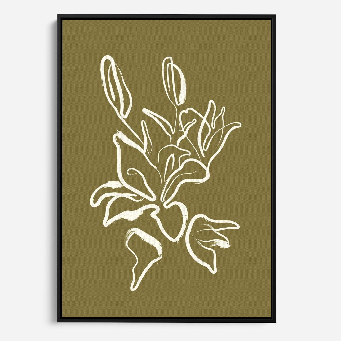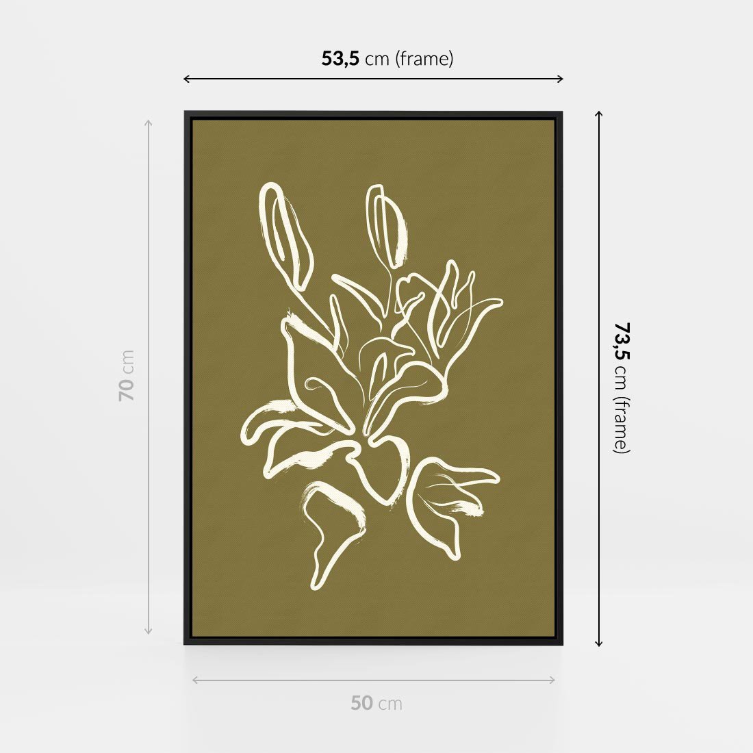 Ten plakat przedstawia abstrakcyjną roślinę w formie minimalistycznego beżowego szkicu na głębokim brązowym tle. Sztuka ta tworzy spokojny i subtelną kompozycję, która dodaje przytulności i estetycznej harmonii Twojej przestrzeni, emanując jednocześnie unikalnym wdziękiem naturalnego piękna.