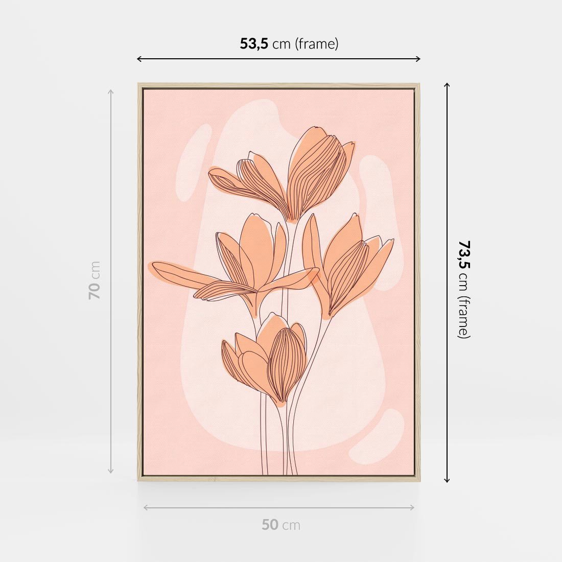 Obraz w ramie 50x70 - Przenikające Kształty - minimalistyczny plakat, pudrowe kwiaty - rama drewno