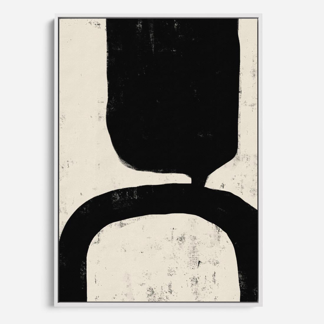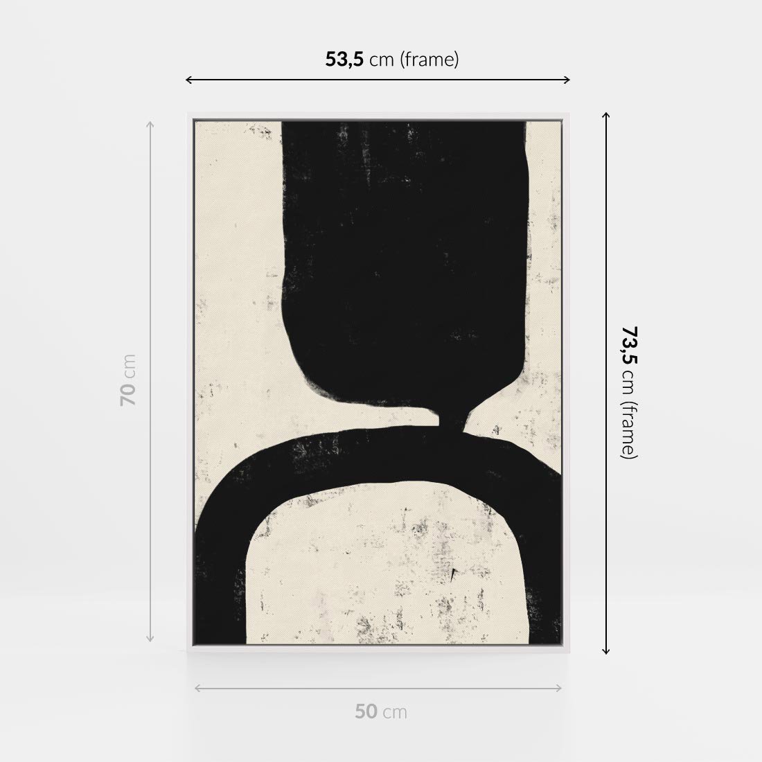 Ta abstrakcyjna sztuka w minimalistycznym stylu skupia się na kontrastach czerni i bieli, tworząc nieregularne kształty, które emanują dramaturgią. To doskonały dodatek do nowoczesnych przestrzeni, zachwycając swoją wyrazistością i subtelnością.