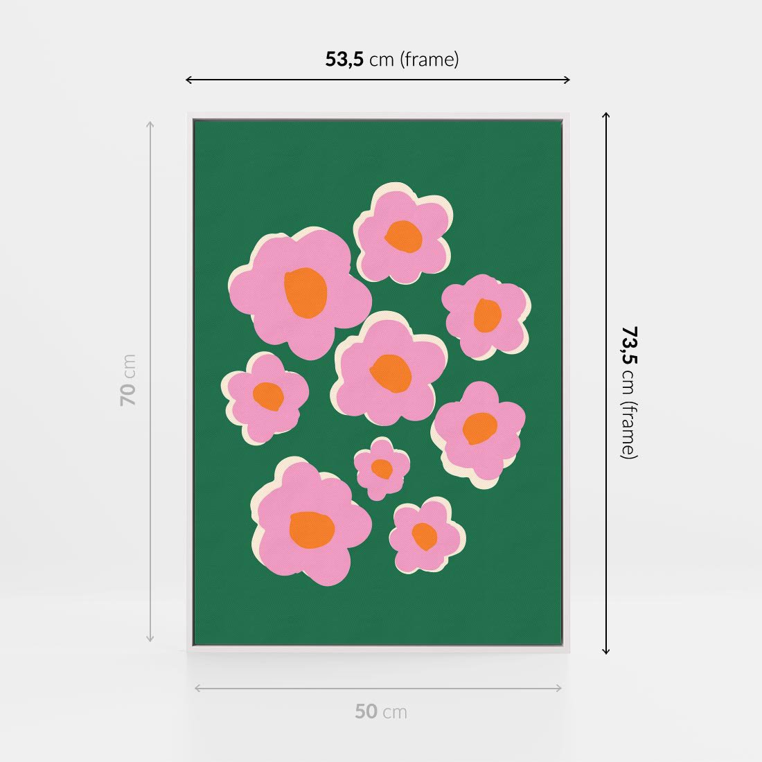 Ten abstrakcyjny plakat w boho stylu przenosi naturę do Twojego salonu, łącząc intensywną zieleń i róż z subtelnie ukazanymi kwiatowymi motywami. Tworzy on niepowtarzalną atmosferę w przestrzeni, zachęcając do relaksu i podziwiania piękna otaczającego świata.