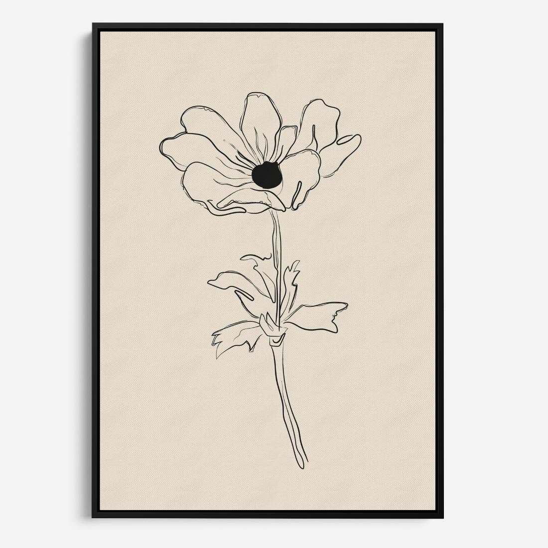 Obraz w ramie 50x70 - Przenikający Dialog - szkic kwiatu, mnimalistyczny szkic - rama czarna