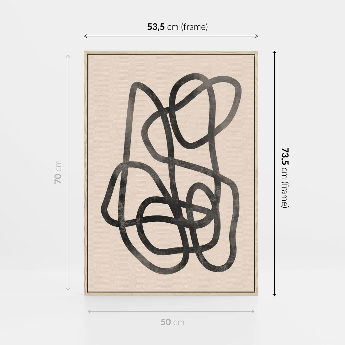 Obraz w ramie 50x70 - Przenikanie Wirtualnych Wymiarów - zaplątane minimalistyczne linie, na bezowym tle - rama drewno