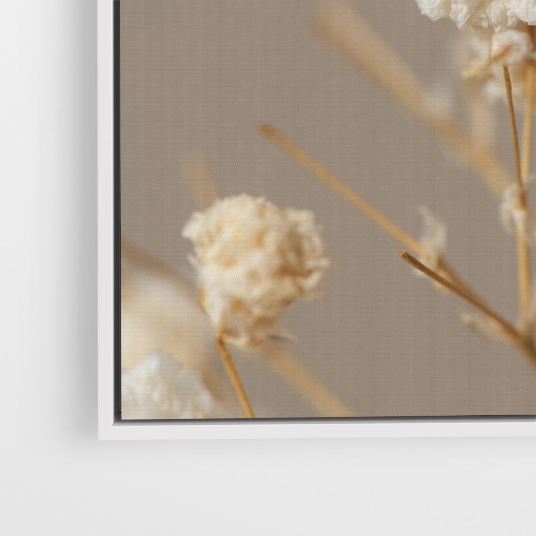 Ten niepowtarzalny obraz na płótnie przedstawia suche kwiaty gipsówki, które dzięki procesowi suszenia zachowują swoją naturalną urodę. Ich przezroczyste płatki i delikatne formy tworzą subtelny i elegancki obraz. Dodaj szczyptę natury i wyrafinowania do swojego wnętrza tym pięknym dziełem sztuki.