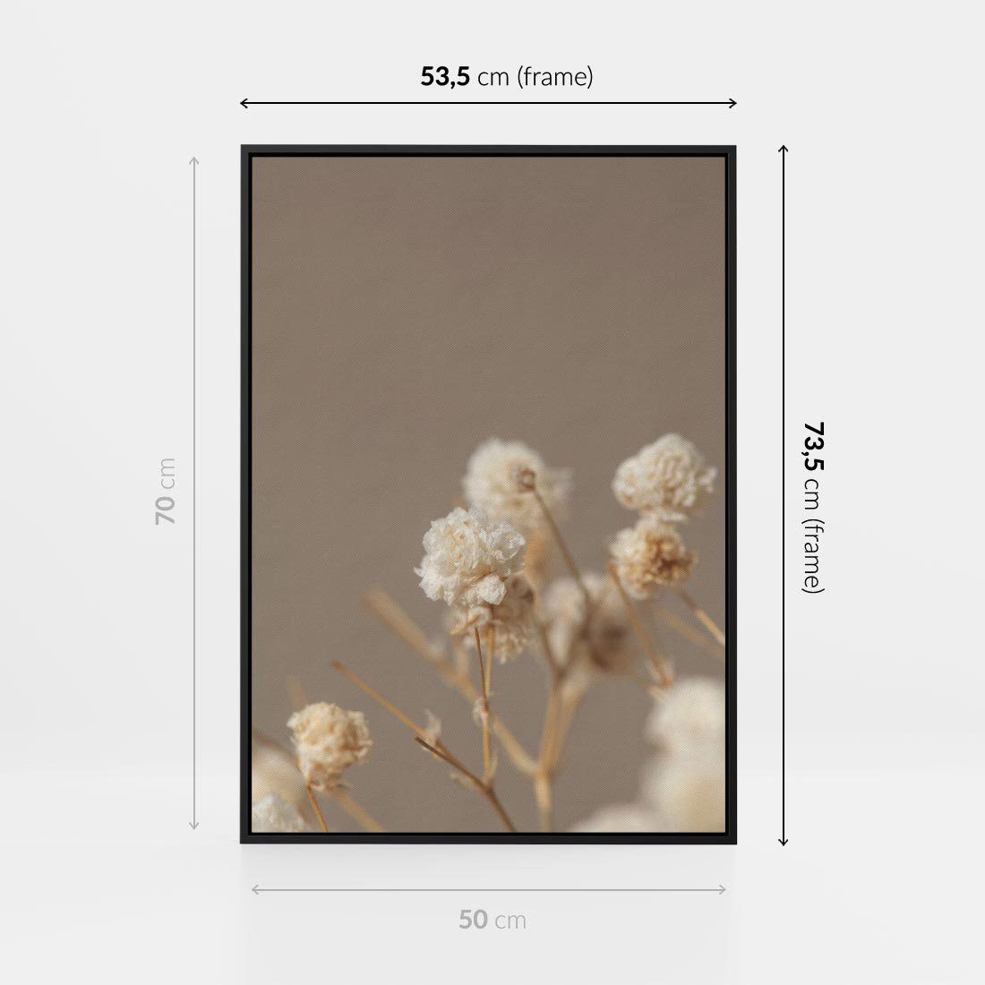 Ten niepowtarzalny obraz na płótnie przedstawia suche kwiaty gipsówki, które dzięki procesowi suszenia zachowują swoją naturalną urodę. Ich przezroczyste płatki i delikatne formy tworzą subtelny i elegancki obraz. Dodaj szczyptę natury i wyrafinowania do swojego wnętrza tym pięknym dziełem sztuki.