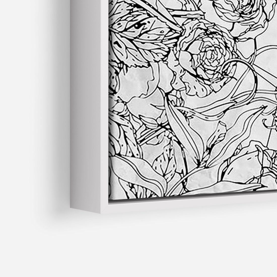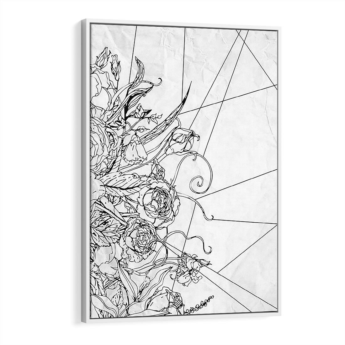 Obraz w ramie 50x70 - Refleksje w martwym punkcie - graficzny szkic, kompozycja kwiatów - rama biała