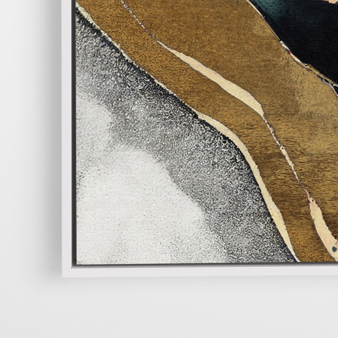 Obraz w ramie 50x70 - Refrakcje płynącej rzeczywistości - jak marmurowa rzeka, linie złota - rama biała