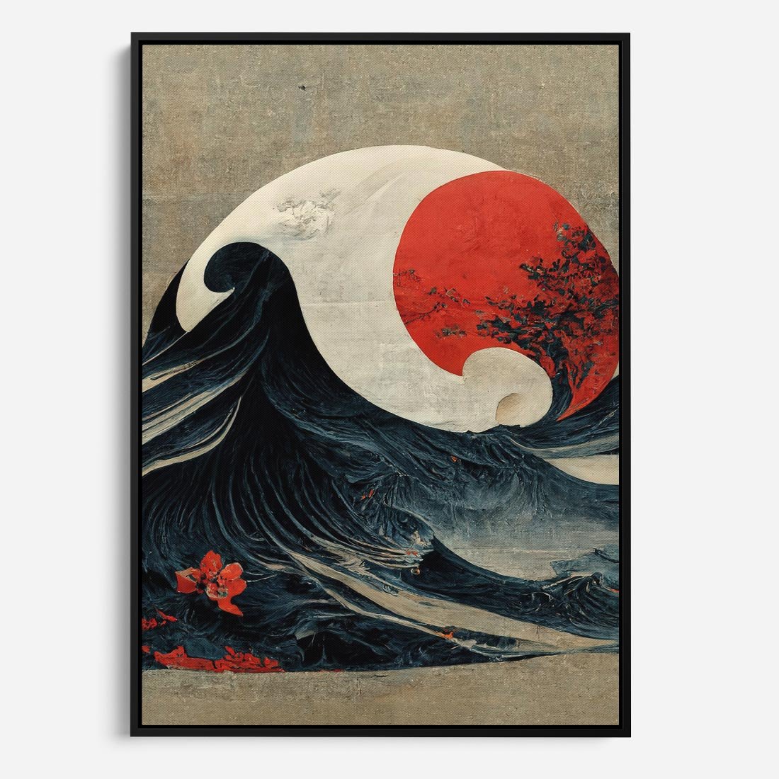 Obraz w ramie 50x70 - Requiem dla marzeń - sztuka japońska, fale oceanu - rama czarna