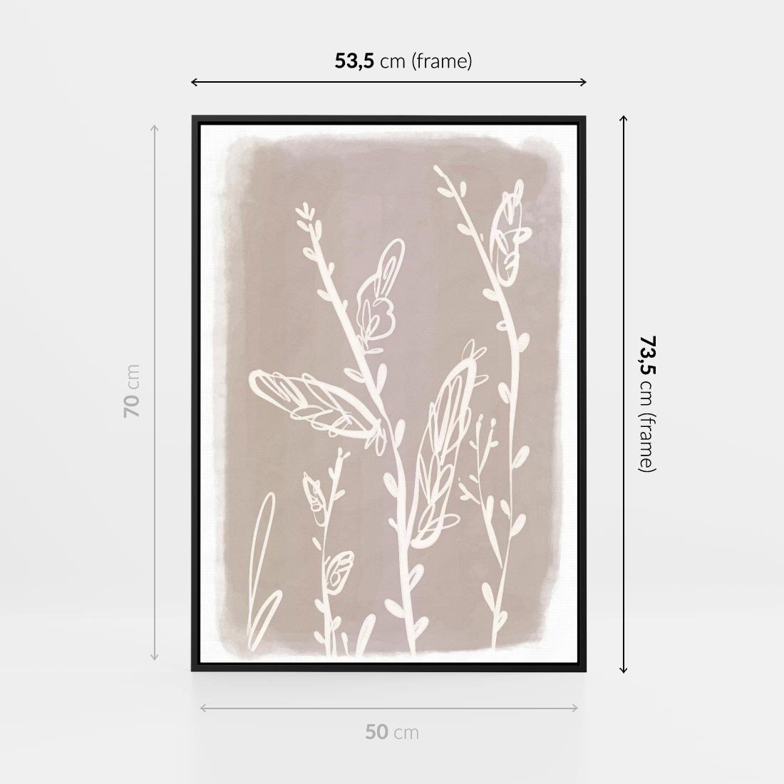 Obraz w ramie 50x70 - Roślinne Przeniknięcia - nowoczesny subtelny plakat, beżowy - rama czarna