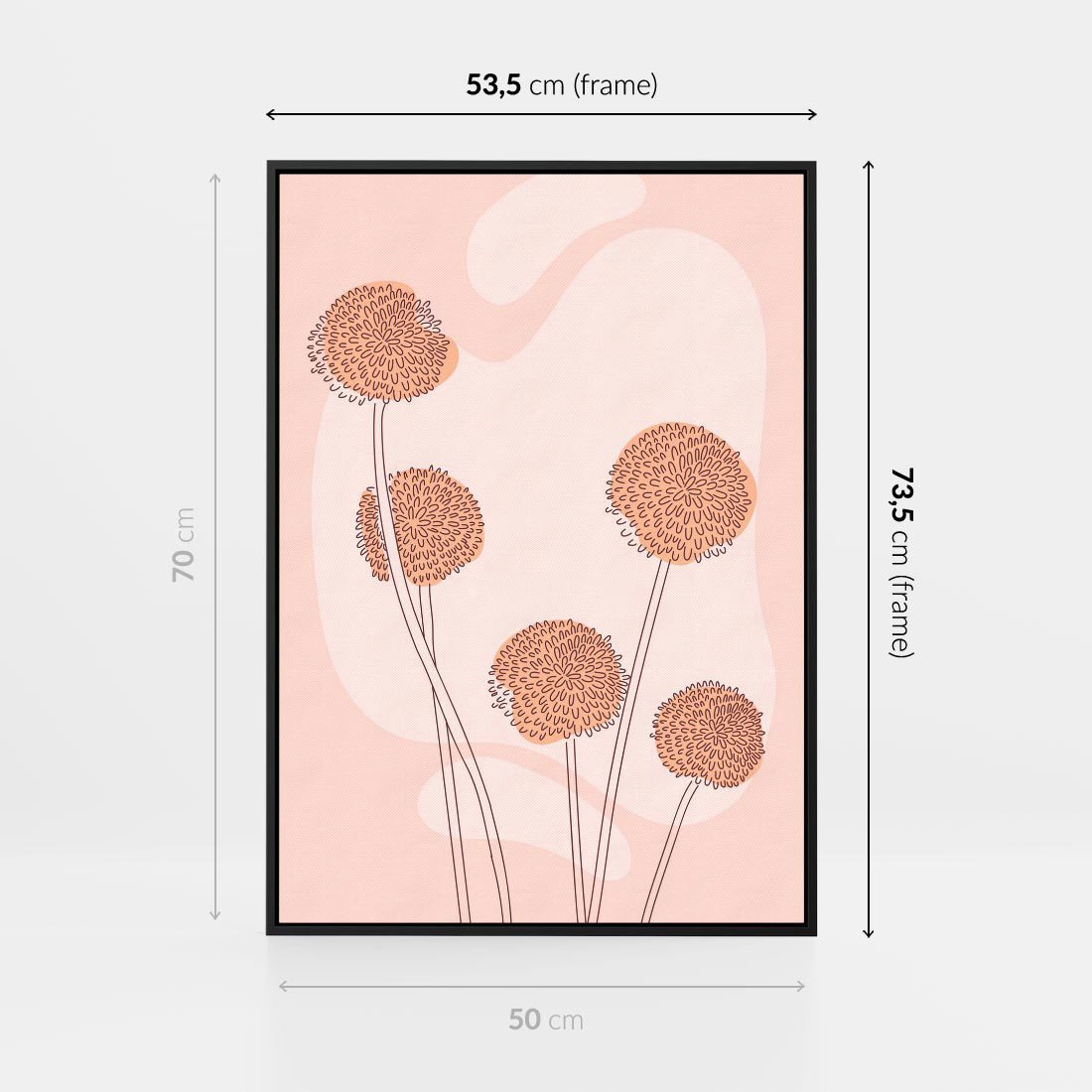 Obraz w ramie 50x70 - Rozkwitające Emocje - minimalistyczny plakat, pudrowe kwiaty - rama czarna