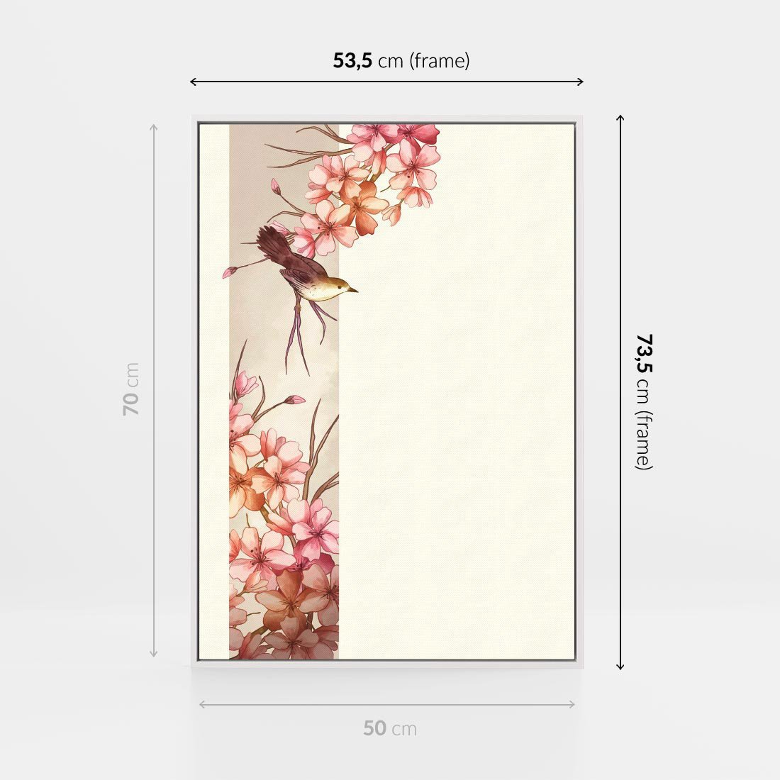 Obraz w ramie 50x70 - Rozkwitające Marzenia - japońska sztuka, ptak - rama biała