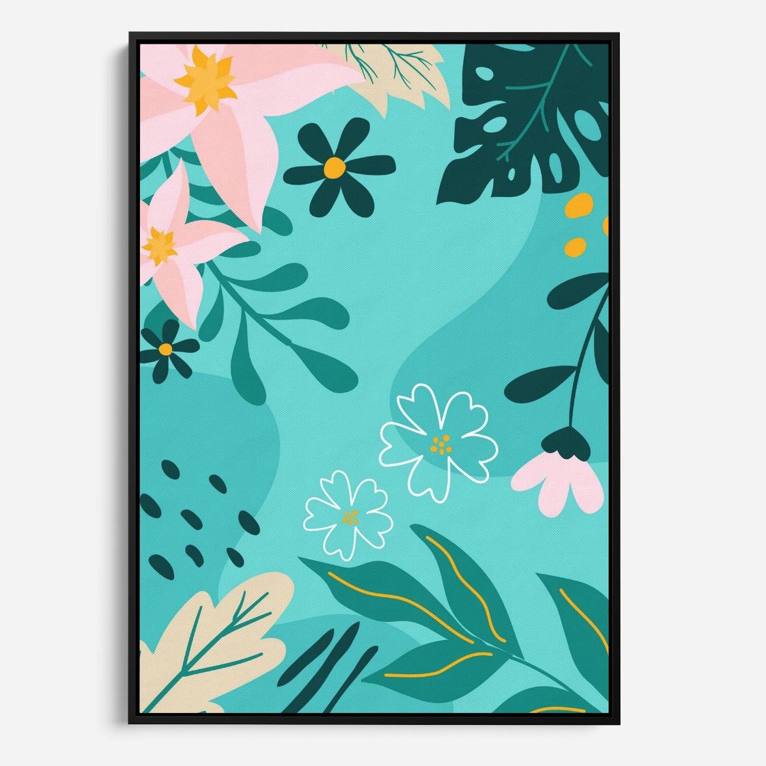 Obraz w ramie 50x70 - Rozkwitające Widoki - pastelowa kompozycja, kwiaty - rama czarna