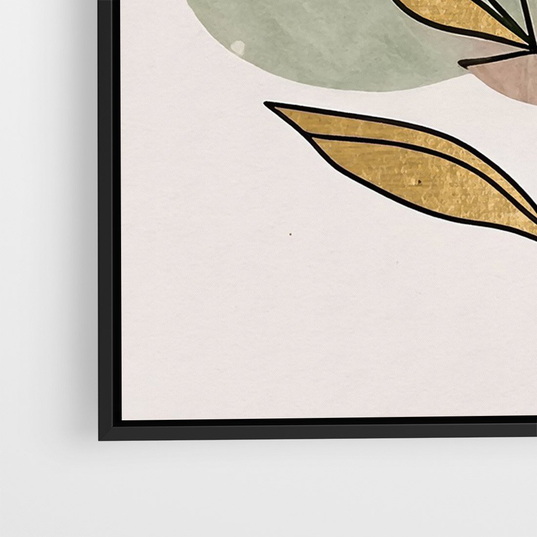 Obraz w ramie 50x70 - Rozkwitające Wnętrza Światła - abstrakcyjny obraz boho, liście - rama czarna