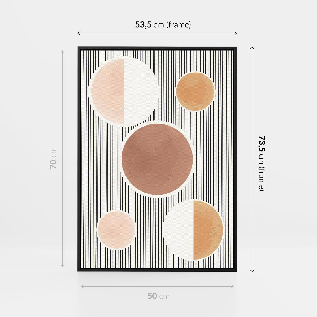 Ta nowoczesna abstrakcja łączy w sobie formy koł i okręgów, przy użyciu szkicowanych linii. Doskonale wpisuje się w minimalistyczne wnętrza, dodając im wyjątkowego charakteru i stylu.