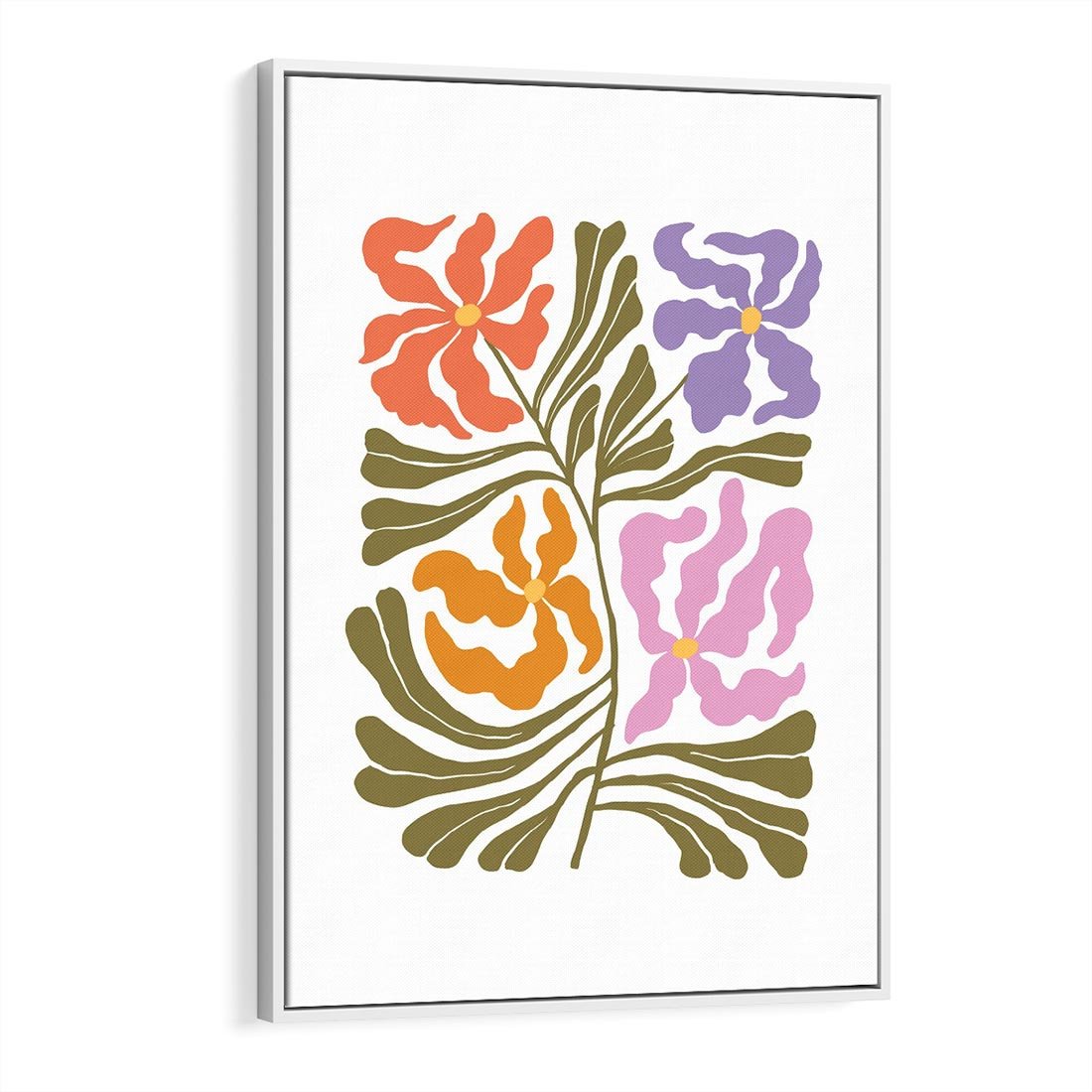 Obraz w ramie 50x70 - Rozplątane Wizje - abstrakcyjne kolorowe kwiaty, minimlizm - rama biała