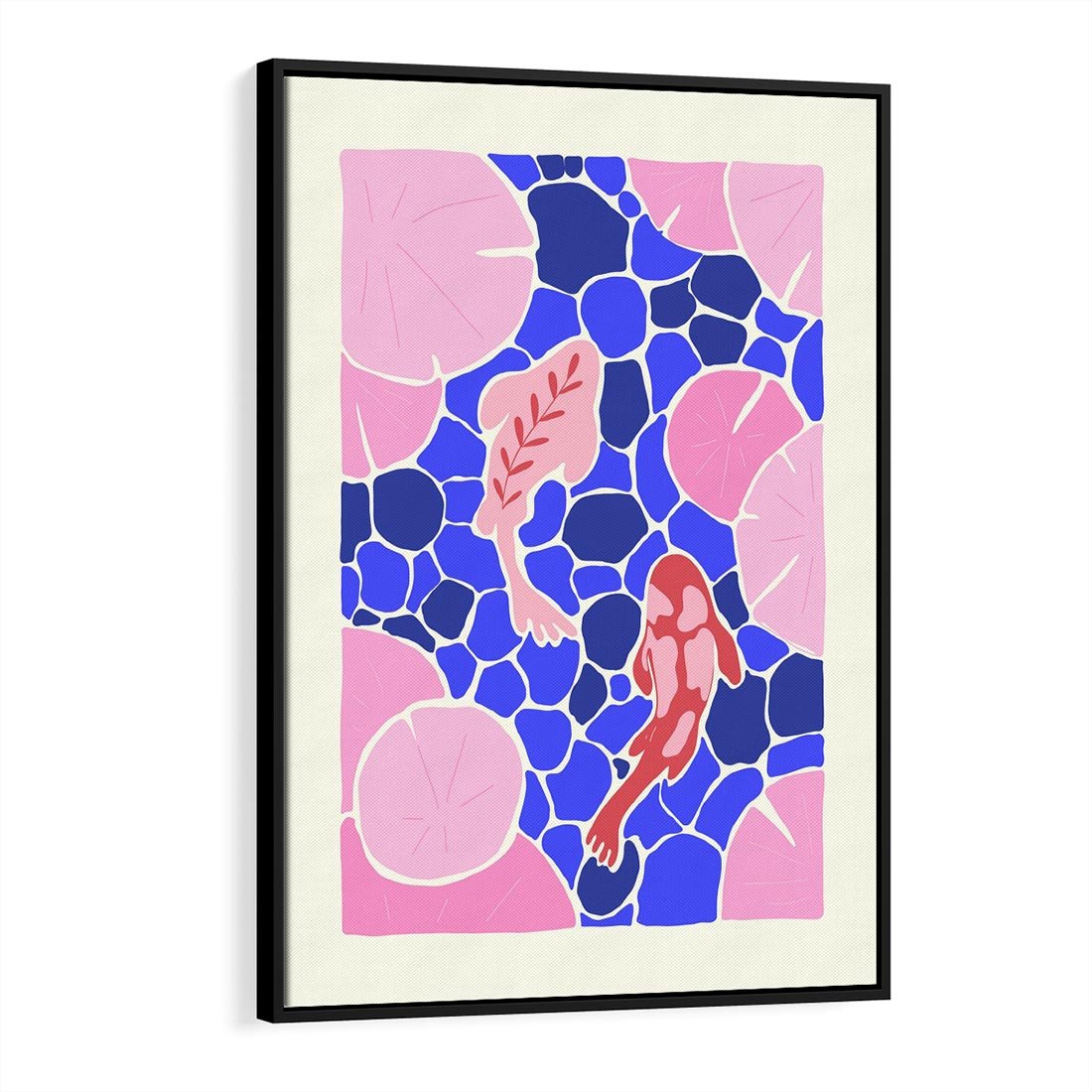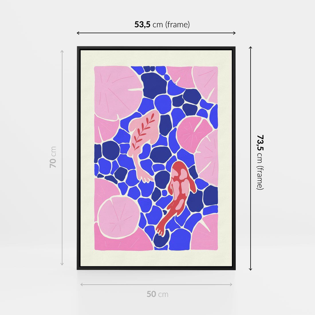Obraz w ramie 50x70 - Rzeka Abstrakcji - abstrakcyjna kompozycja, różowe ryby wśród rafy - rama czarna