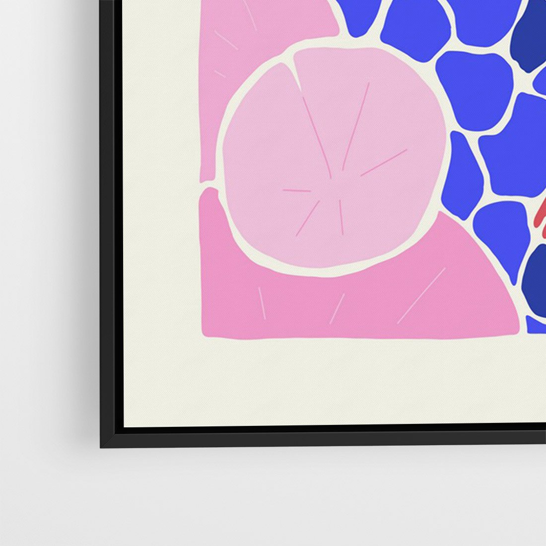 Ta wyjątkowa abstrakcja przenosi cię pod wodę, gdzie różowe ryby tańczą wśród kolorowej rafy. Odcienie różu i kobaltu tworzą magiczną atmosferę, która zachwyci Twoje zmysły.