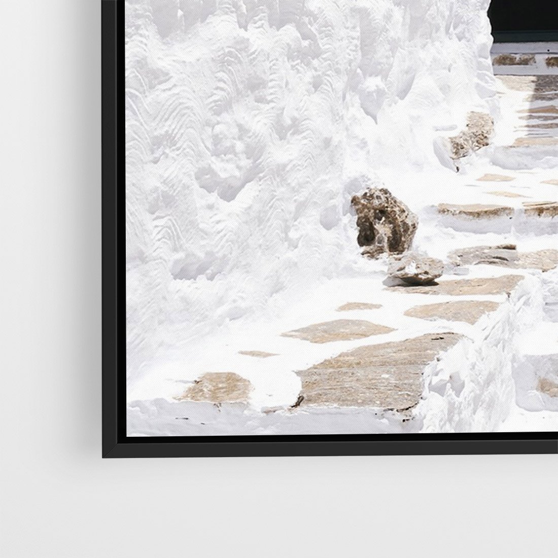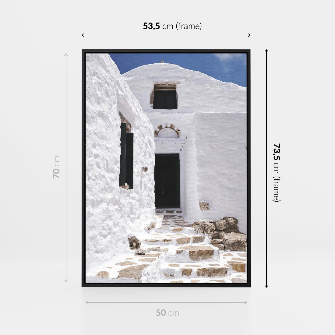 Ten obraz przenosi nas do malowniczej Santorini, gdzie błękit morza splata się z białymi domami. Jego kolorystyka i atmosfera wprowadzą do wnętrza nutę śródziemnomorskiego uroku i spokoju. Doskonały wybór dla miłośników greckiej kultury i sielankowego piękna.
