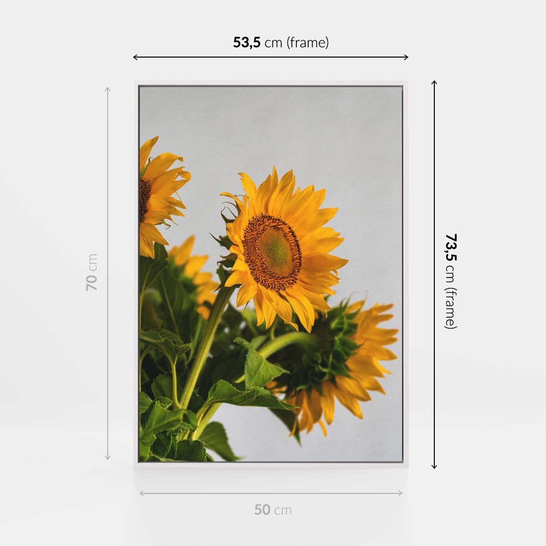 Obraz w ramie 50x70 - Słoneczna Radość - fotografia, żółte słoneczniki - rama biała