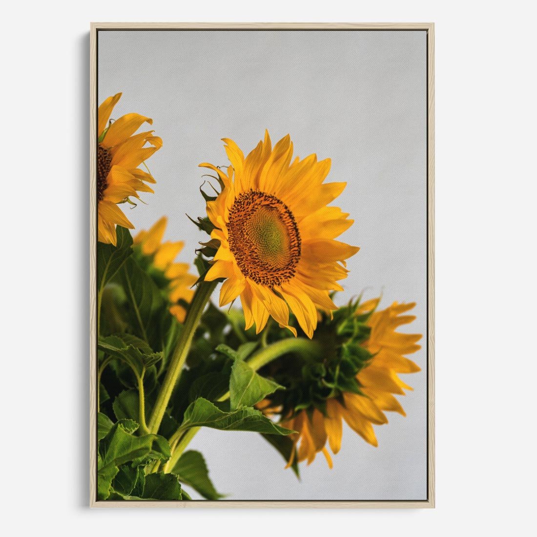 Obraz w ramie 50x70 - Słoneczna Radość - fotografia, żółte słoneczniki - rama drewno