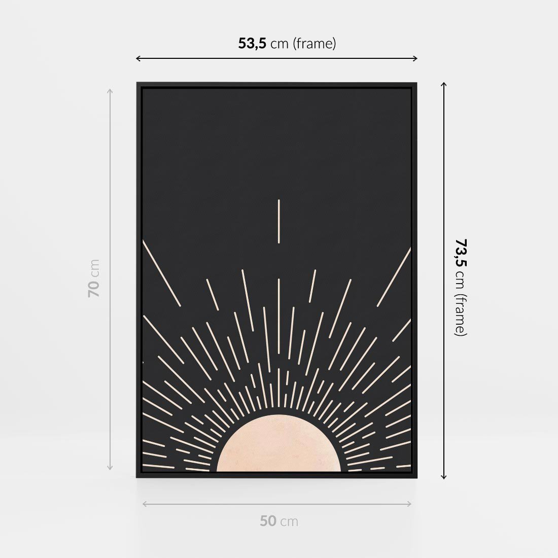 Obraz w ramie 50x70 - Słoneczny Portret Duszy - boho czarne słońce, nowoczesna grafika - rama czarna