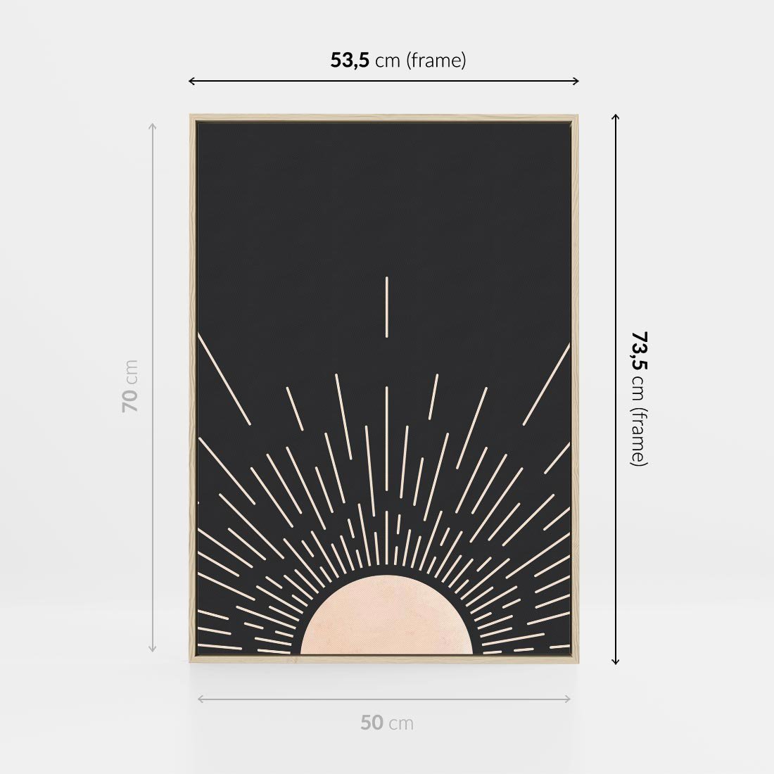 Obraz w ramie 50x70 - Słoneczny Portret Duszy - boho czarne słońce, nowoczesna grafika - rama drewno