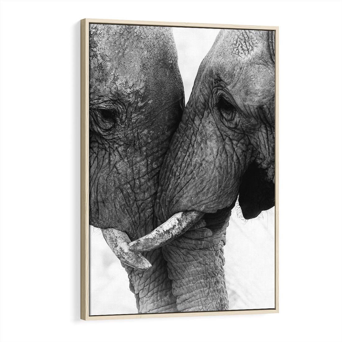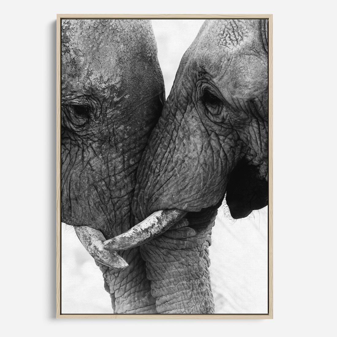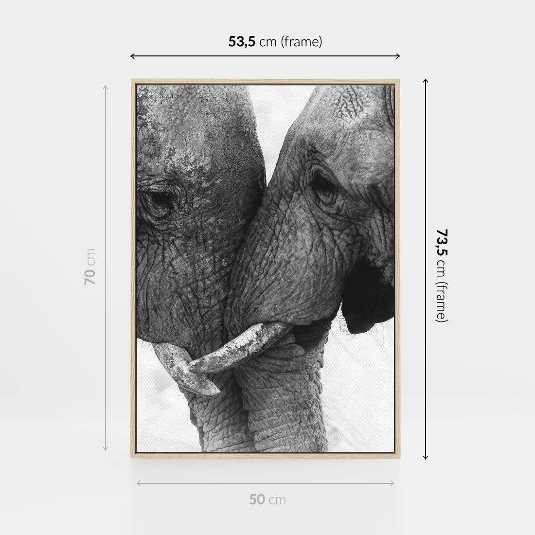 Obraz w ramie 50x70 - Spotkanie Mądrości - fotografia czarno biała, dwa słonie - rama drewno