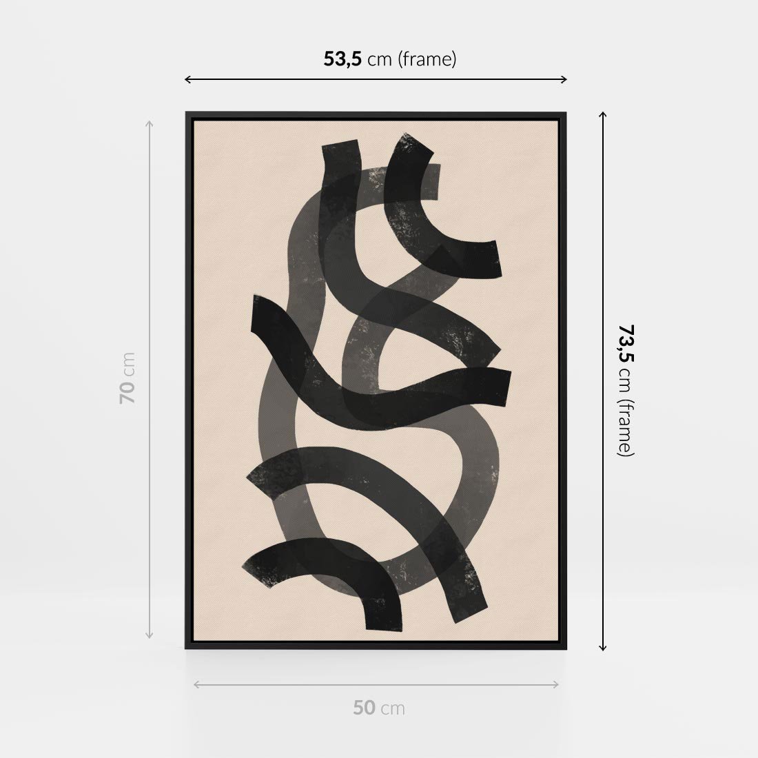Obraz w ramie 50x70 - Strukturalne Odbicia Innowacji - zaplątane minimalistyczne linie, na bezowym tle - rama czarna