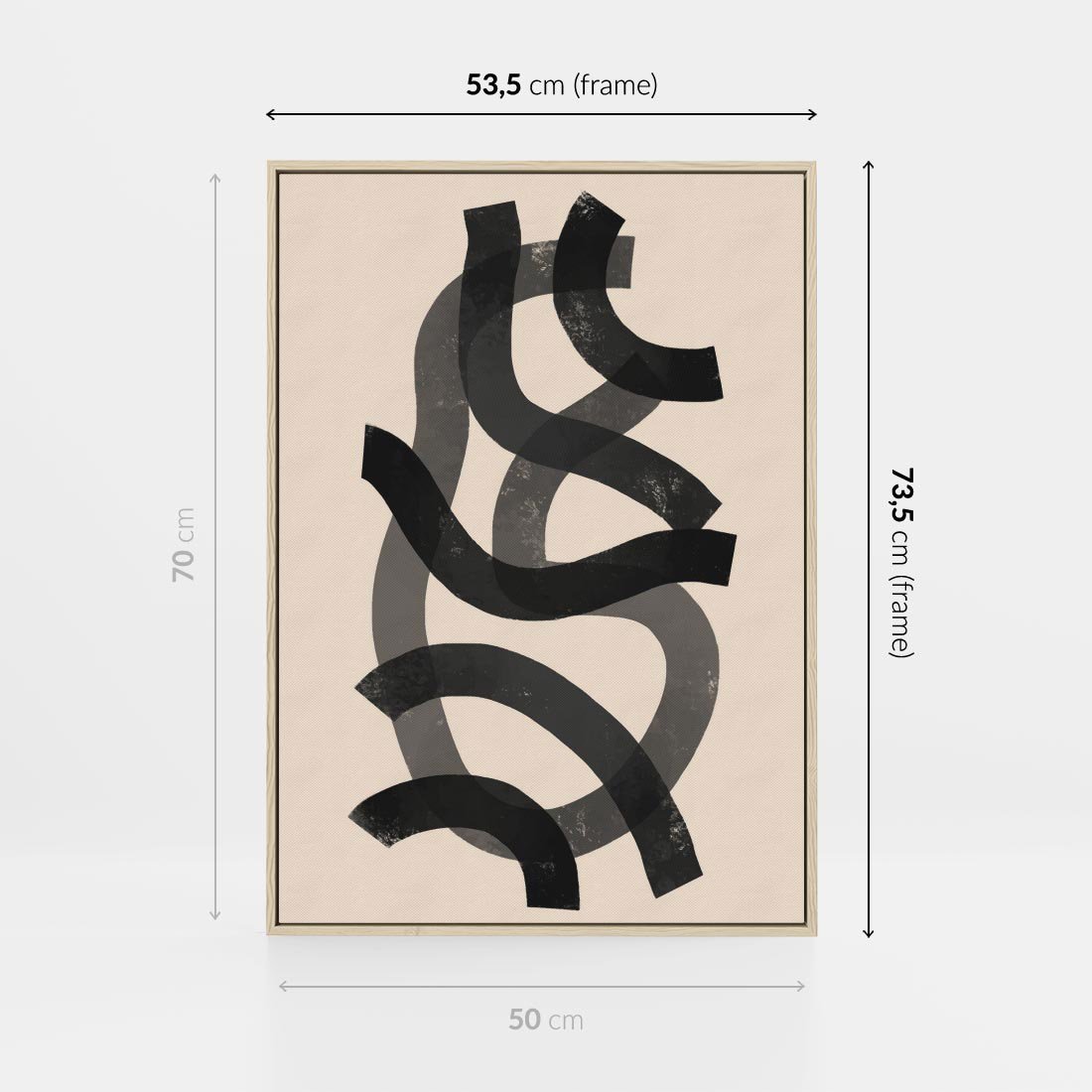 Obraz w ramie 50x70 - Strukturalne Odbicia Innowacji - zaplątane minimalistyczne linie, na bezowym tle - rama drewno