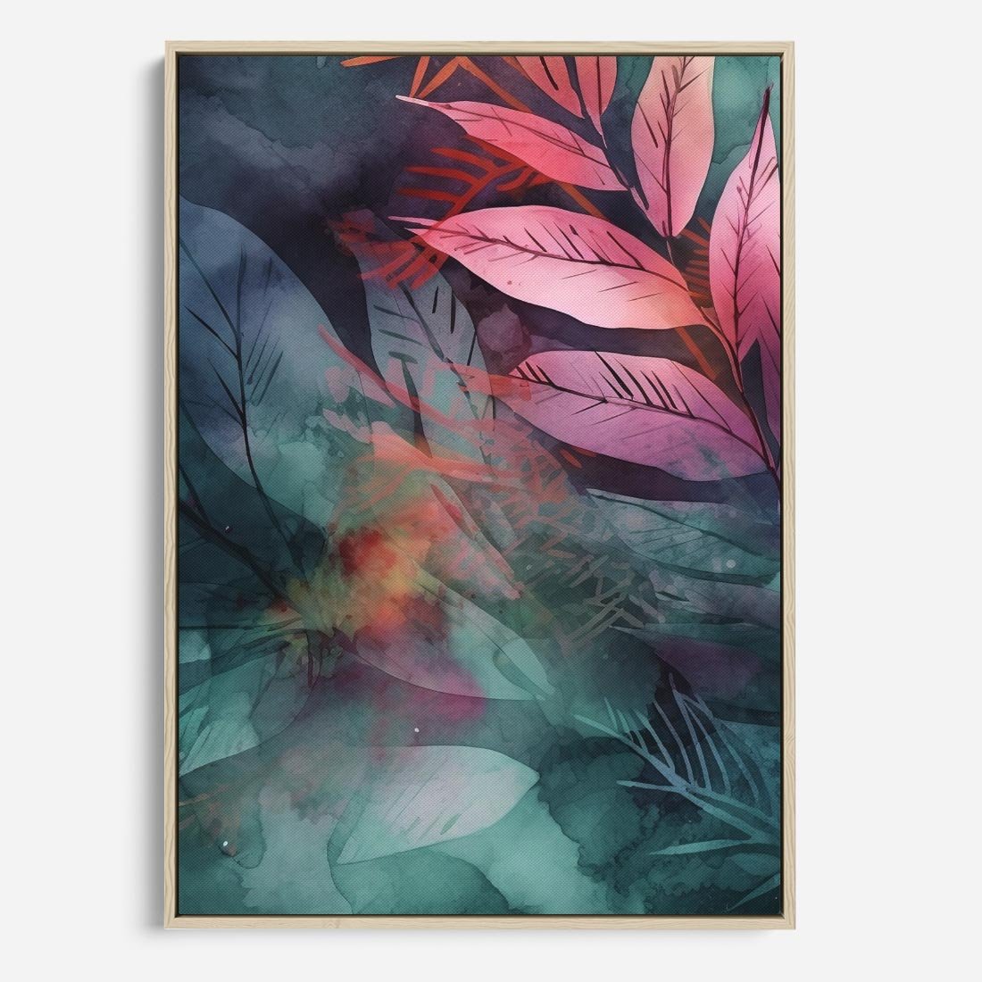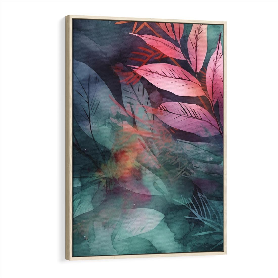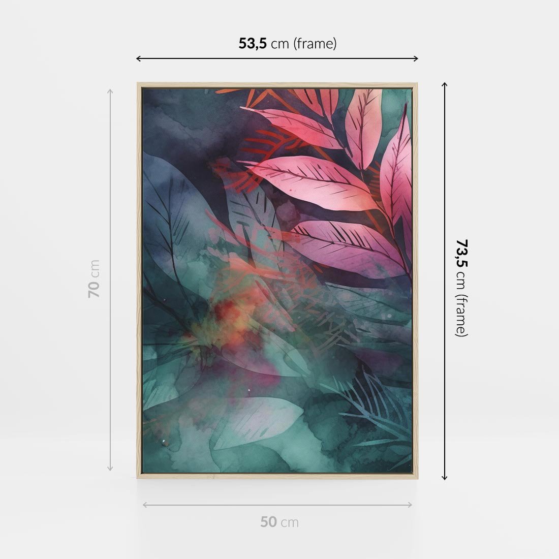 Obraz w ramie 50x70 - Subtelne Zielone - pastelowe zielone liście, róż - rama drewno